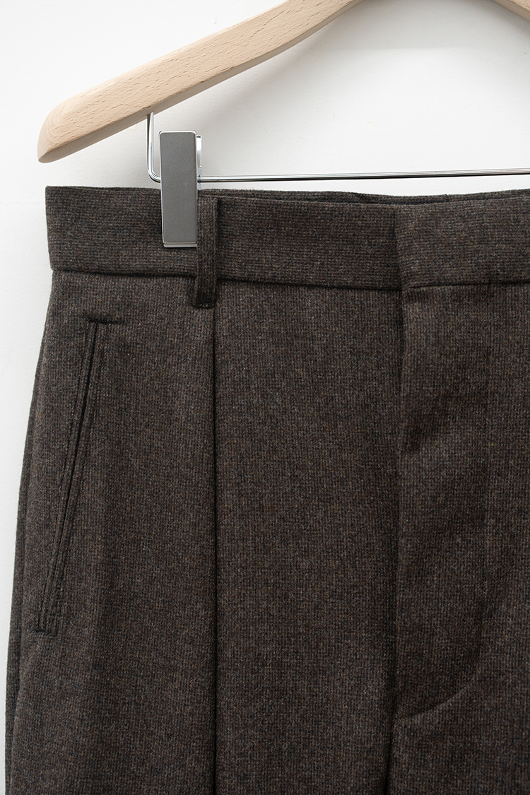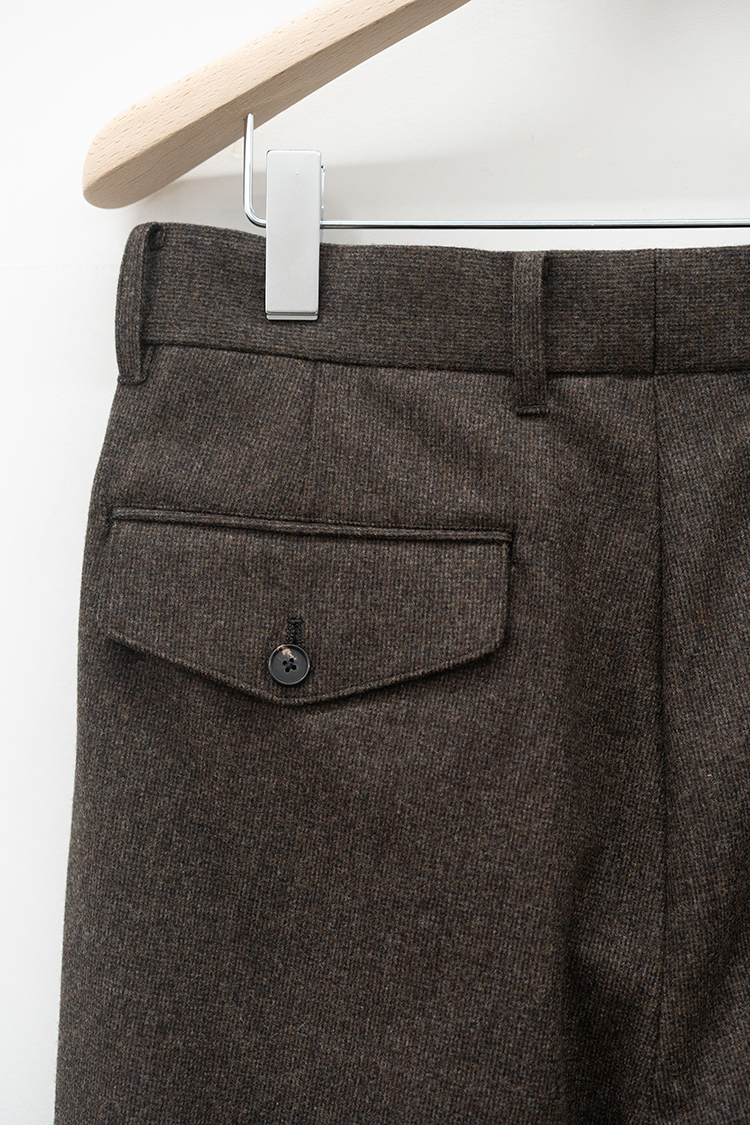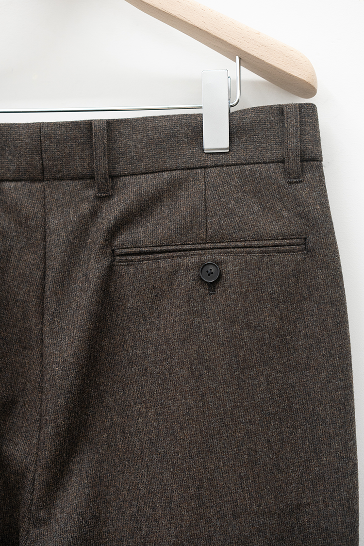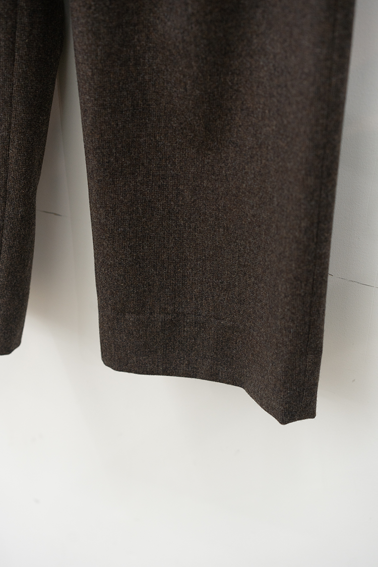 素材 WOOL 100% ※着用詳細 173cm / BROWN HAIRLINE / size 46 サイズスペック 【46】ウエスト-82.0cm 股上-30.5cm 股下-79.0cm 裾幅-24.0cm
