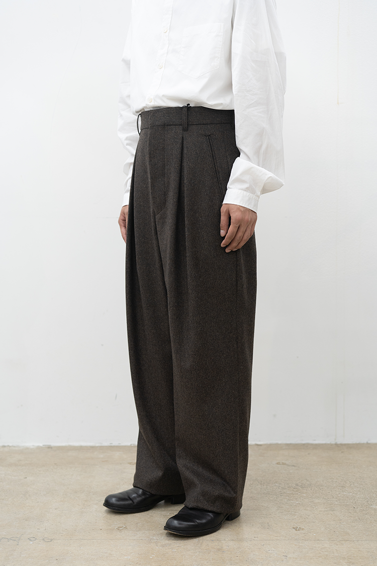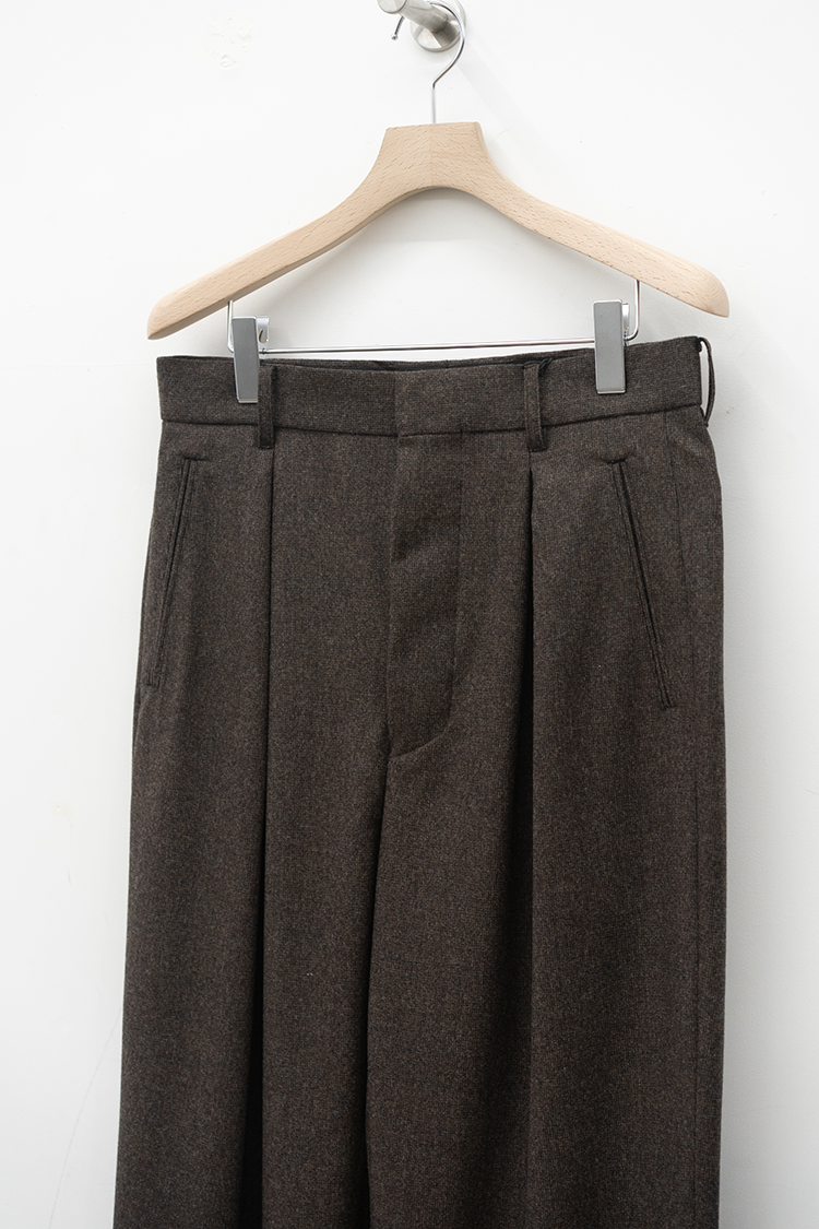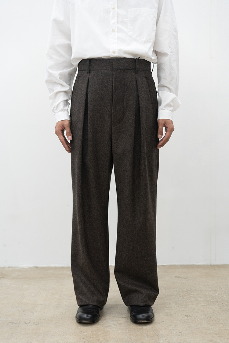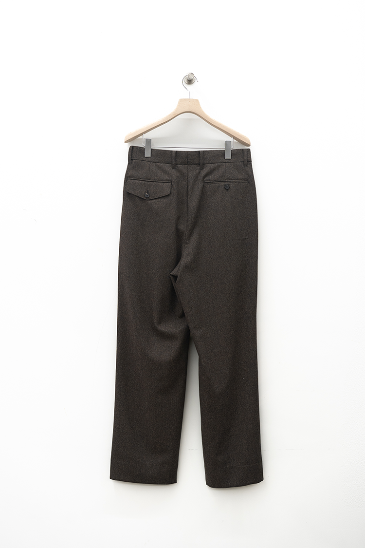 素材 WOOL 100% ※着用詳細 173cm / BROWN HAIRLINE / size 46 サイズスペック 【46】ウエスト-82.0cm 股上-30.5cm 股下-79.0cm 裾幅-24.0cm