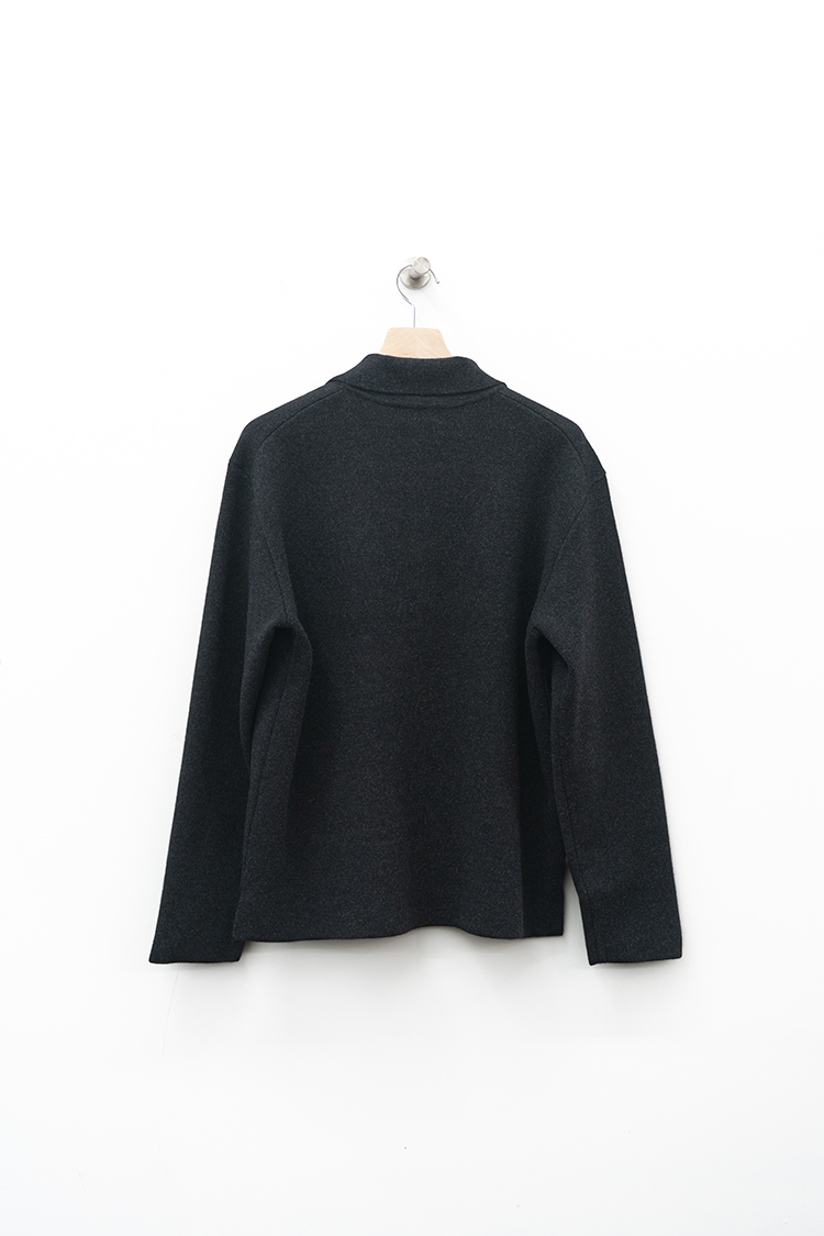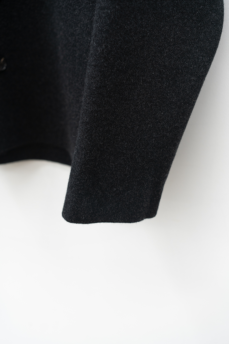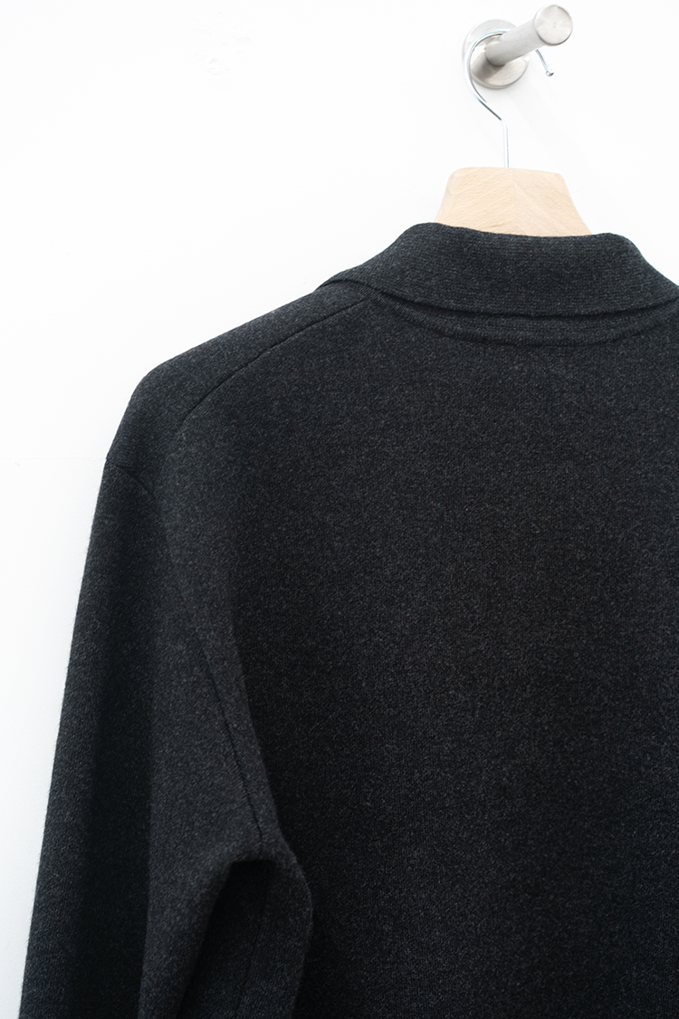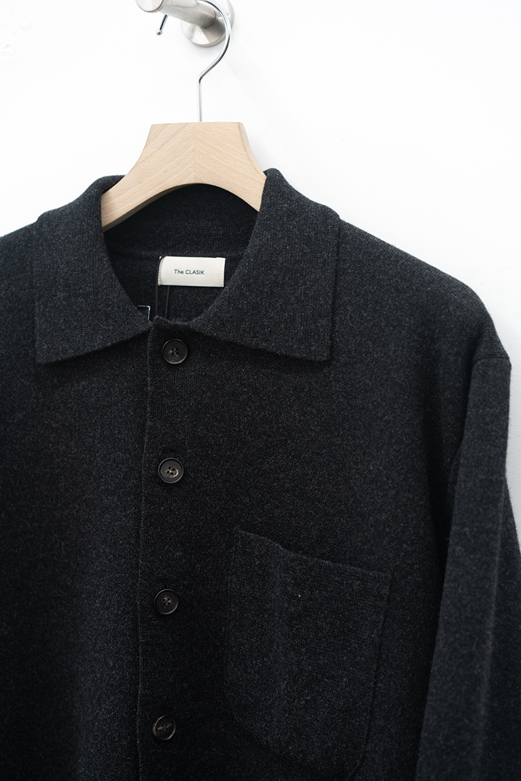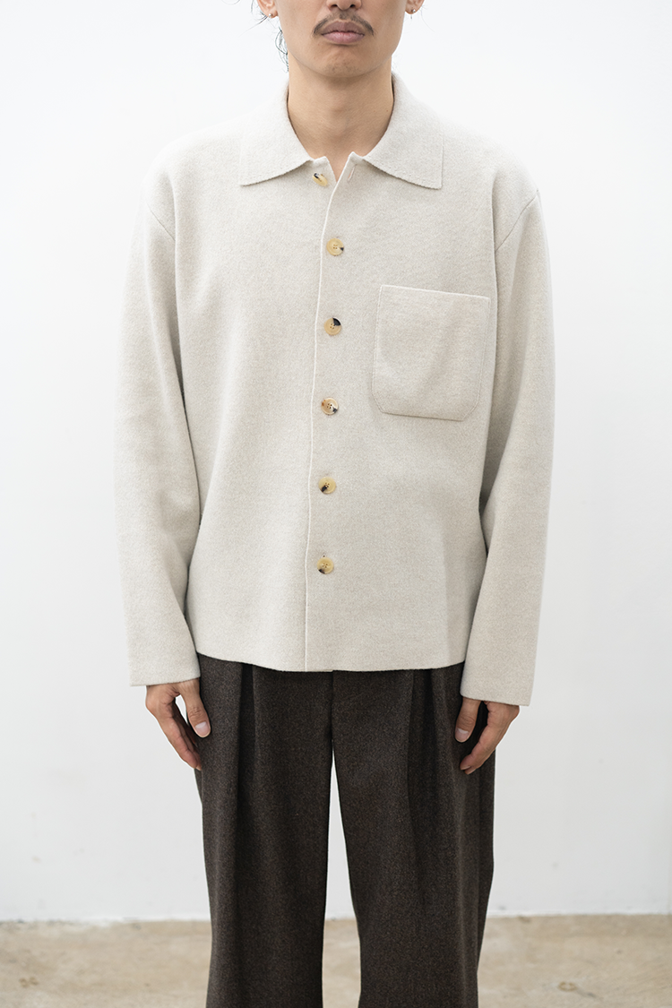 ニット素材のシャツカーディガン。 上品なルックスながらも天竺編みではなく スムース編みを用いることでキックバックある質感に 仕上がりニットアイテムながらジャケットのように 構築的な印象でお楽しみ頂けます。 ボクシーでショート丈シルエットの為 カットソーだけでなく、シャツやハイネック等とのレイヤードも○ 素材 WOOL ※着用サイズ 173cm / IVORY / size 46 サイズスペック 【46】着丈‐64.0cm 身幅‐60.0cm 肩幅-47.0cm 袖丈-58.0cm 【48】着丈‐66.0cm 身幅‐62.0cm 肩幅-48.0cm 袖丈-61.0cm