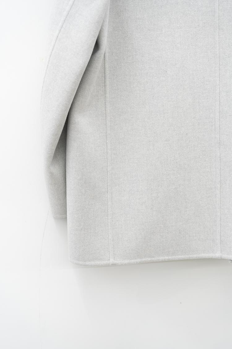 メルトン仕上げでありつつ原料の持つしなやかさで落ち感のある生地。