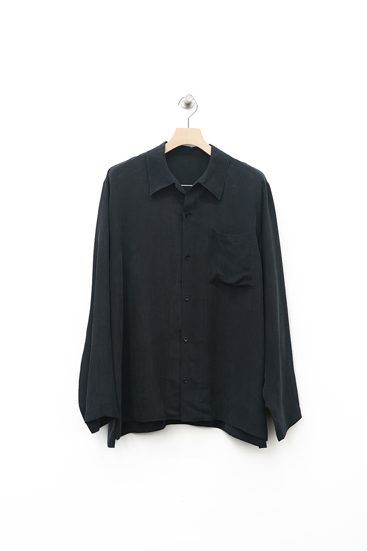 キュプラの平織り、生地で洗いをかけてピーチ加工しています。洗いをかけることで自然な風合いにハリは残りつつコシを抜いています。形はベーシックな開襟シャツ。パジャマのようなリラックス感で、残暑厳しい秋の始まりに気持ちよく着ることを想定しています。 ※ピーチ加工とは桃の表面のように細かな起毛がある状態にすることです。表面がうっすら白く見えるのはそのためです。 素材 Cupro 100% ※着用詳細 cm / size サイズスペック 【M】着丈-73.0cm 身幅-61.0 cm 肩幅-49.0cm 袖丈-61.0cm 【L】着丈-74.0cm 身幅-63.0cm 肩幅-50.0cm 袖丈-62.0cm