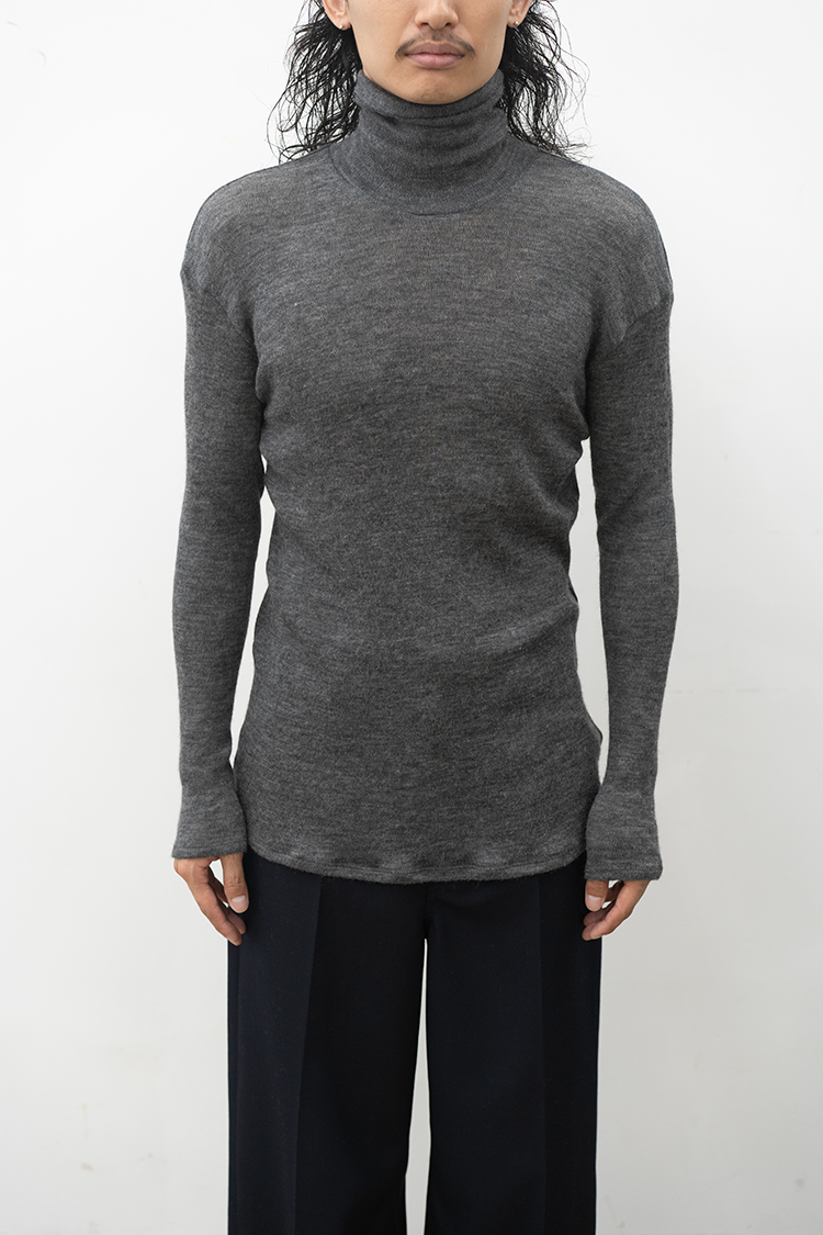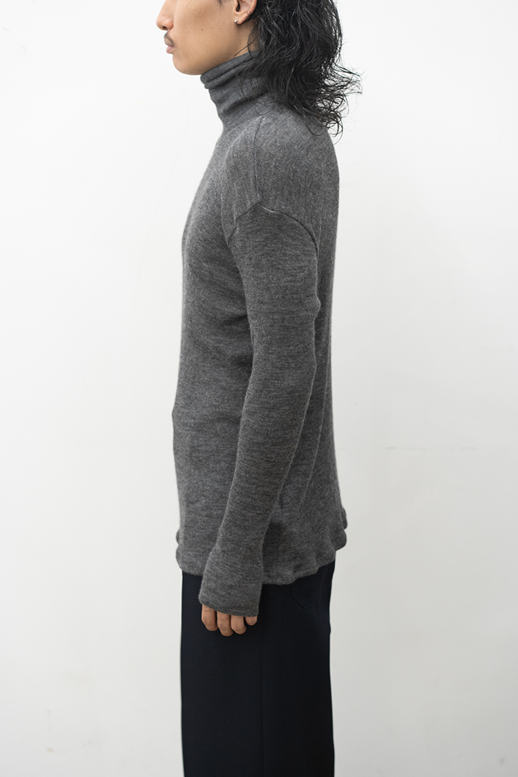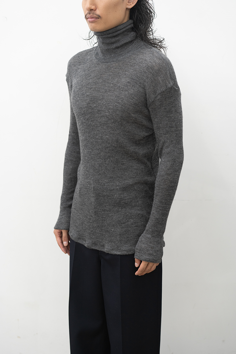 ベビーアルパカ100%のフライス生地を使ったハイネックカットソー。 形は定番のウールのハイネックと同じ。 保温性、通気性に優れるアルパカのベビーアルパカのみを使用しています。 チクチク感はなくです。 光沢もあり、ソフトな肌当たりは着ていないような極上の着心地です。 ※アルパカに関してベビーアルパカと呼ばれる繊維は赤ちゃんのベビーに限定したものではなく、繊維の細さ(ミクロン)によって分類されます。赤ちゃんから多く採れる傾向にあるのでベビーと名づけられています。 素材 Baby Alpaca 100% ※着用詳細 173cm / HEATHER GREY / size L サイズスペック 【L】着丈-69.0cm 身幅-55.0cm 肩幅-49.0cm 袖丈-62.0cm