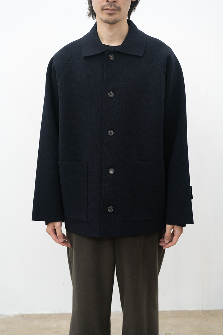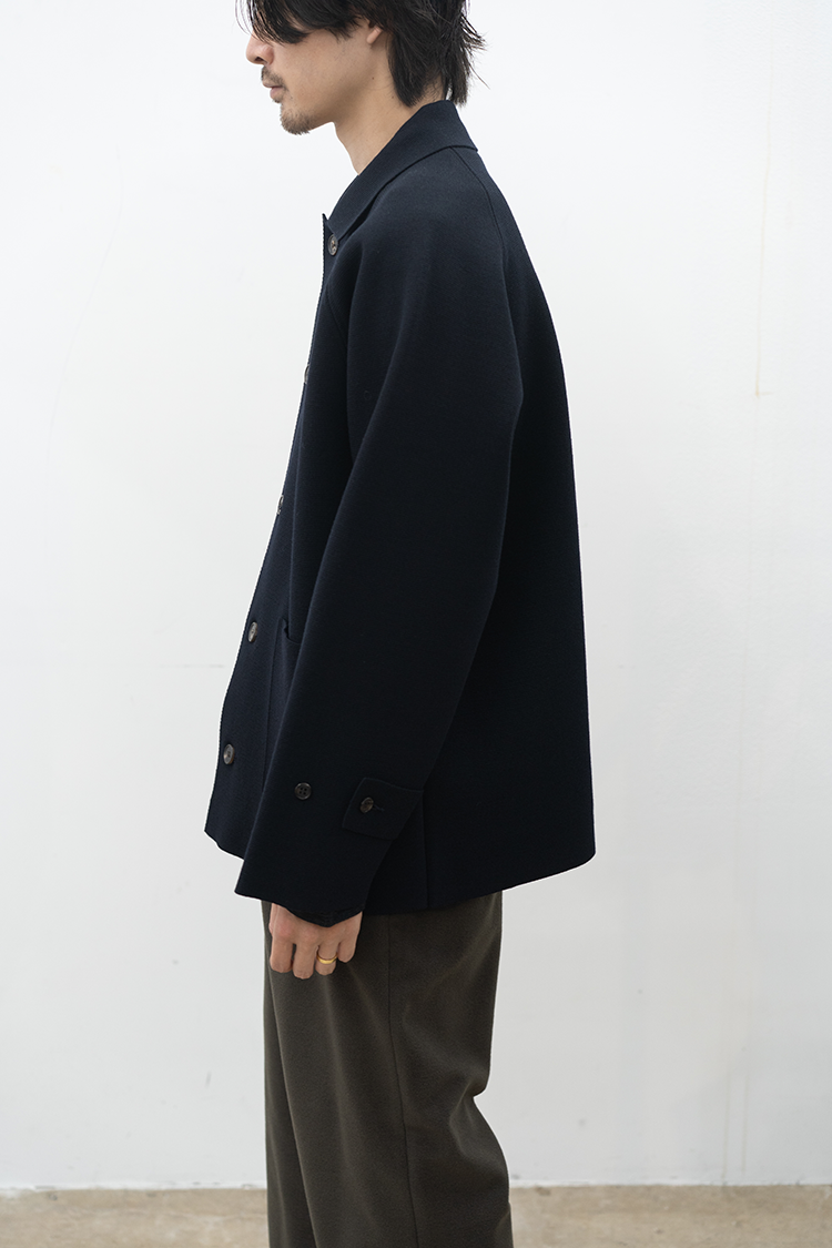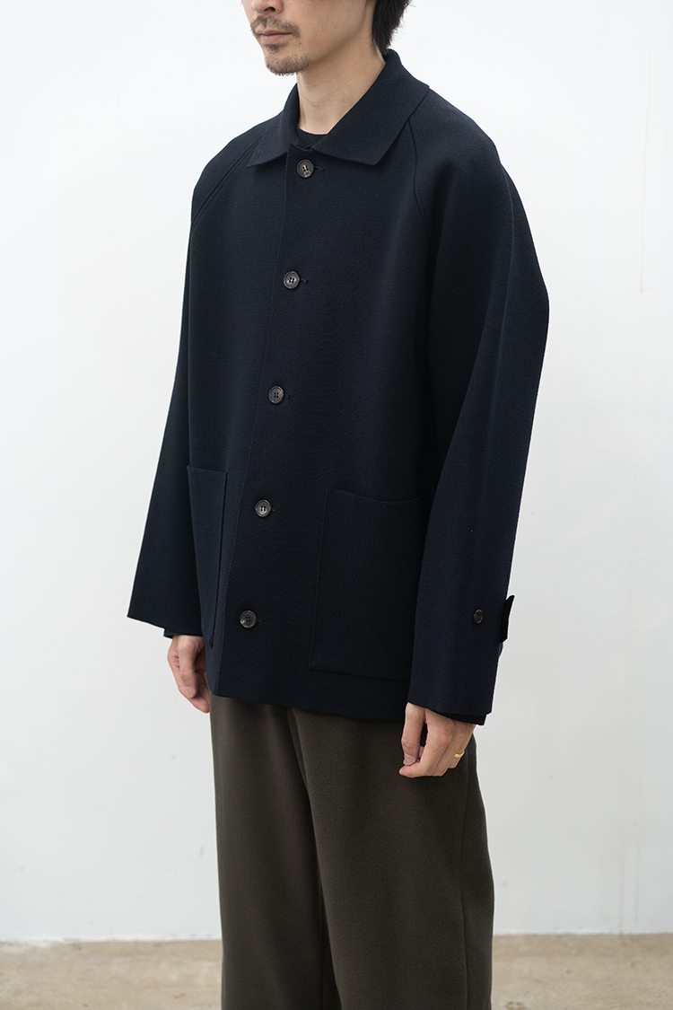 BATONERとしても新たに挑戦をしたアイテム。 成形編みの技術を用いてパターンを作り、縫製をすることで織物で作ったような洋服を製作しました。素材には、スペインを起源とするメリノ種の持つドライな風合いと膨らみを生かした糸を使用。超度詰めしたミラノリブ組織で編み立てました。 構築的なフォルムと耐久性に優れニットアウターの可能性を探った新感覚プロダクト。 素材 WOOL 100% ※着用詳細 175cm / NAVY / SIZE 2 サイズスペック 【2】着丈‐71.0cm 身幅‐62.5cm 袖丈-83.0cm