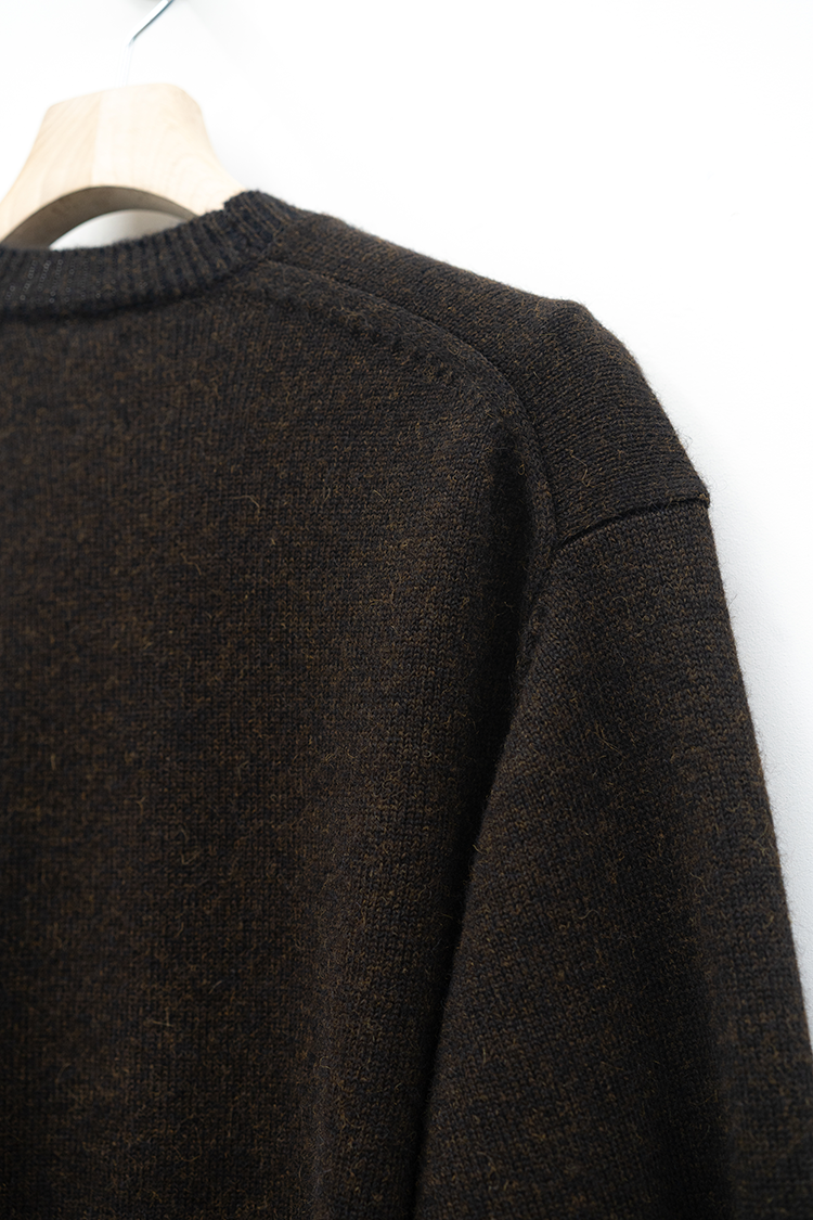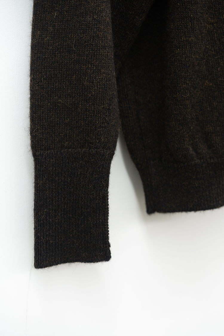 良質なベビーアルパカを絶妙な色差で染め分け、クルミ編みする事で独特の雰囲気に仕上げた商品。膨らみがもたらす暖かさとバルキーな中にソフトな風合いが残る独特の肌触りが特徴です。 素材 ALPACA 100% ※着用詳細 173cm BROWN / SIZE 2 サイズスペック 【2】着丈‐66.0cm 身幅‐58.0cm 肩幅-47.0cm 袖丈-62.0cm 【3】着丈‐68.0cm 身幅‐61.0cm 肩幅-52.0cm 袖丈-65.0cm