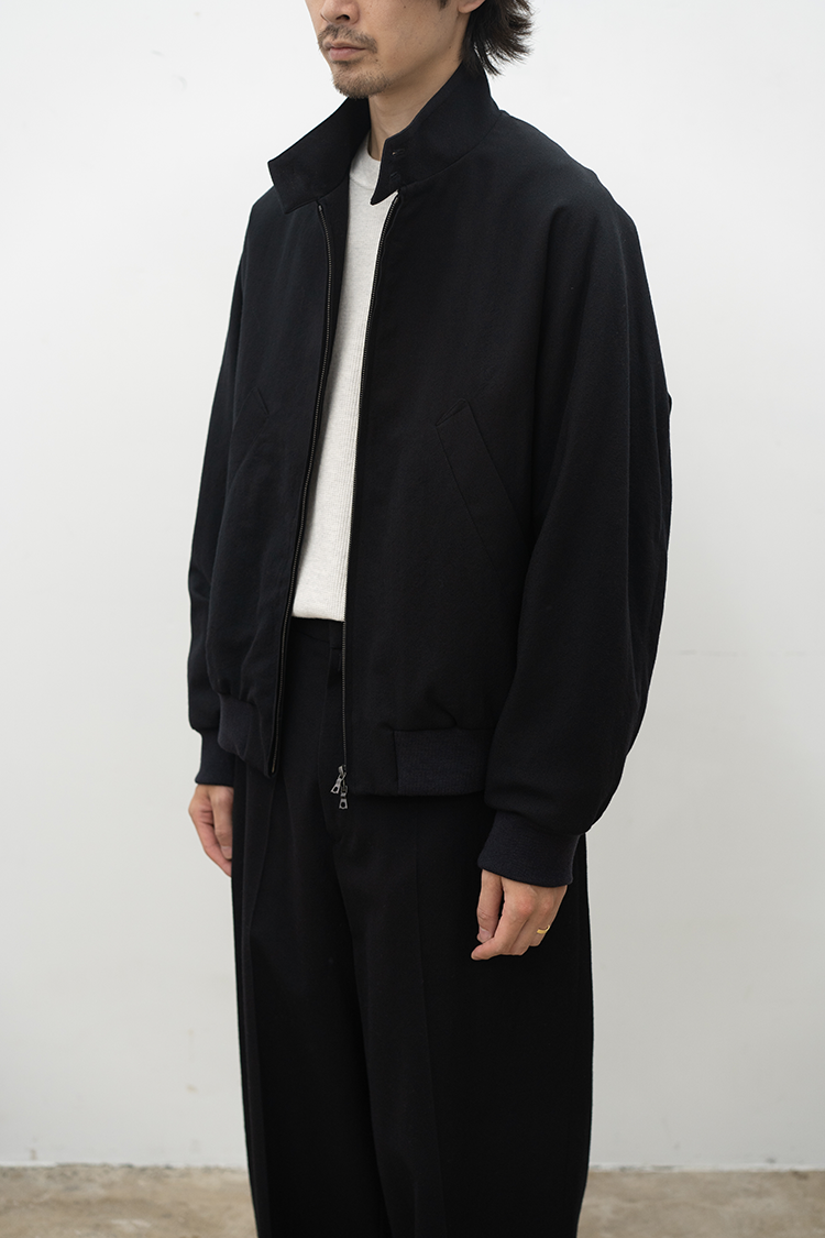 きめ細かく毛羽立たせたウールギャバジン素材を採用したハリントンジャケット。