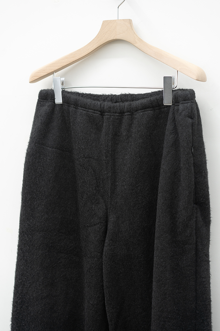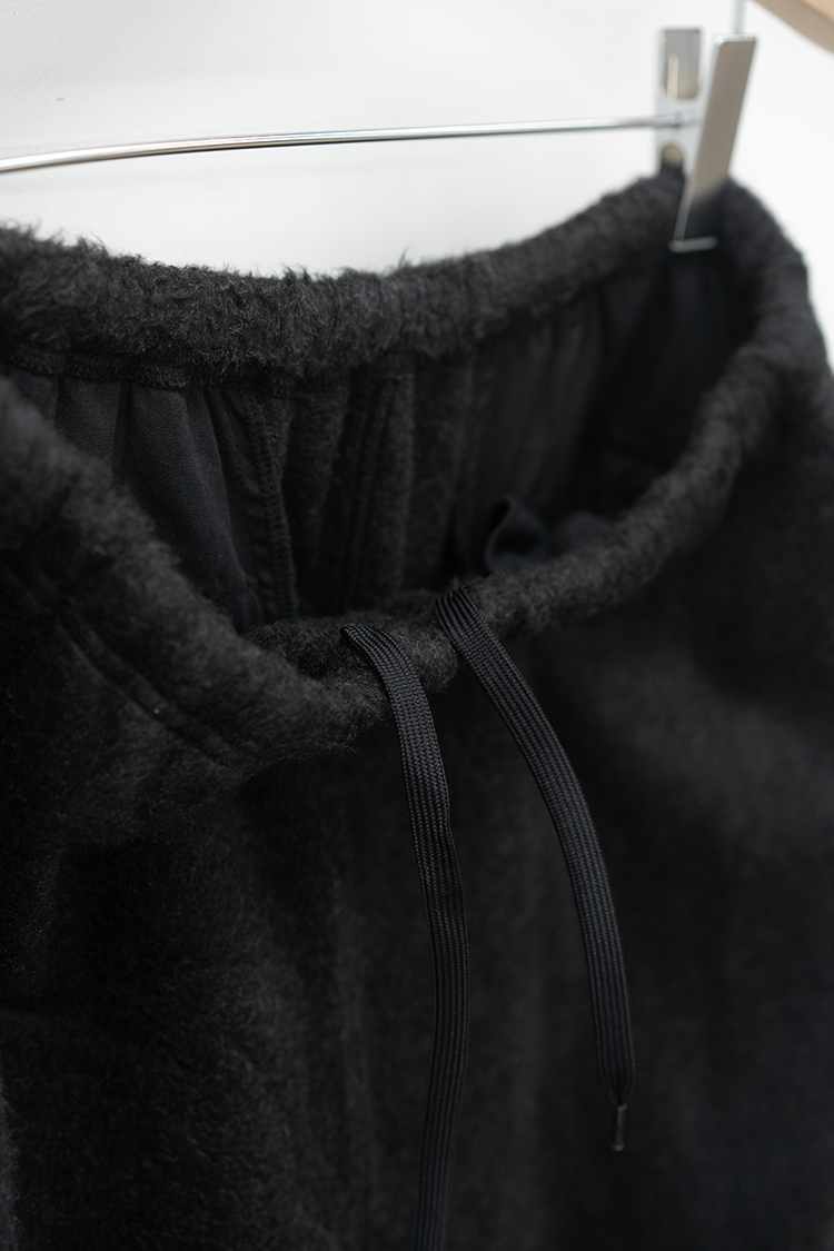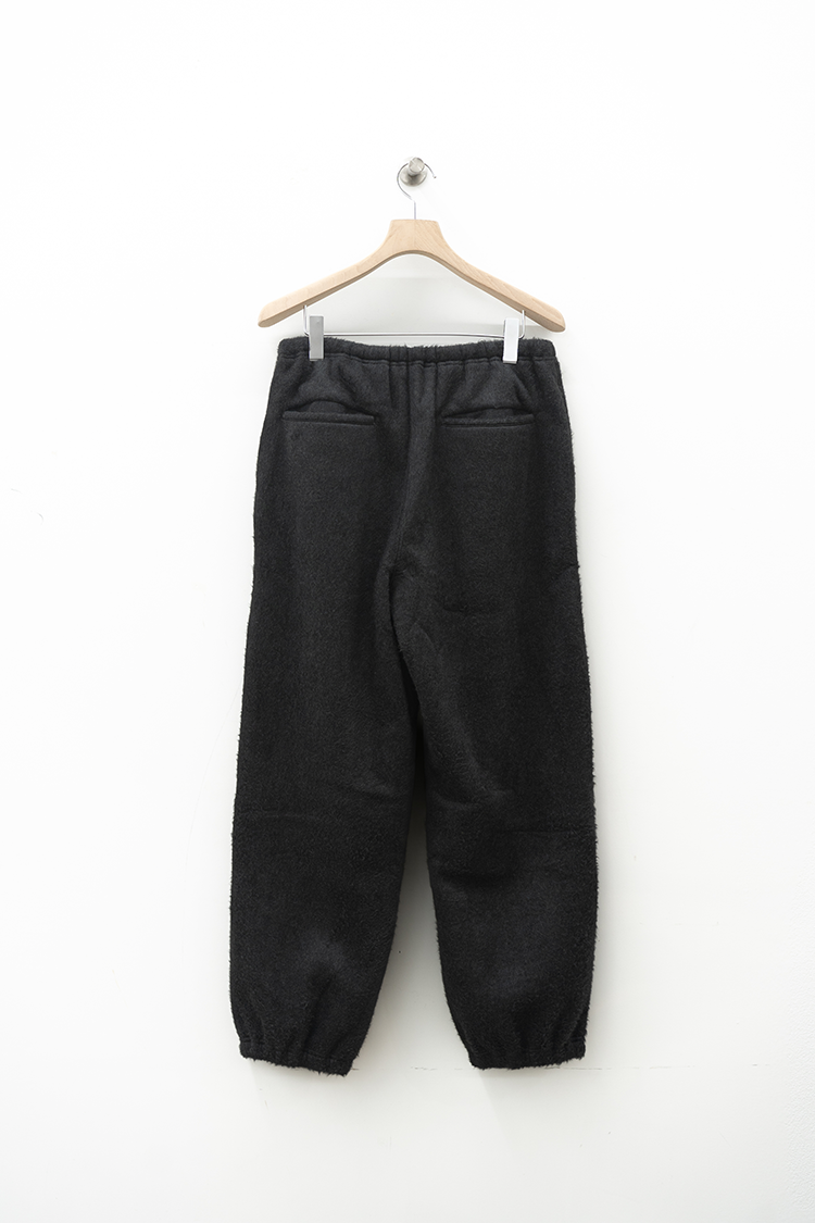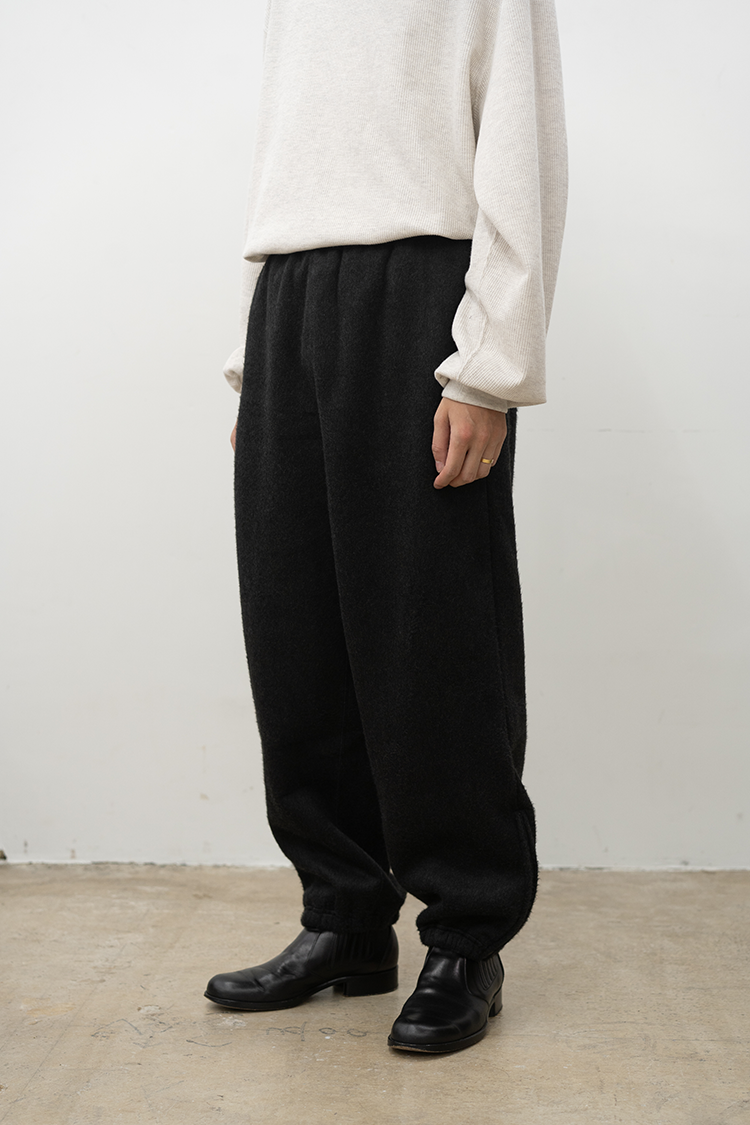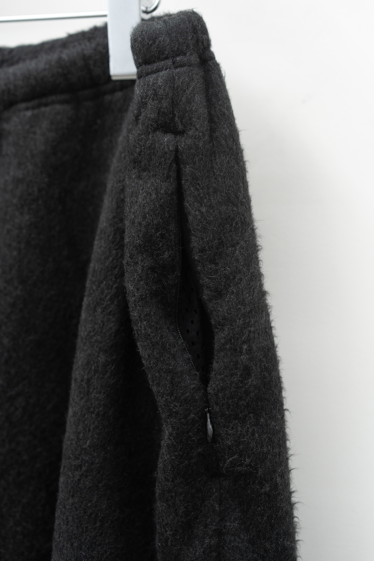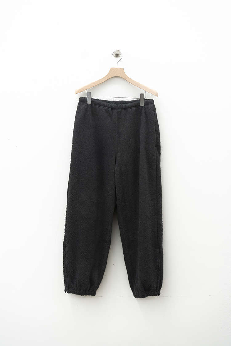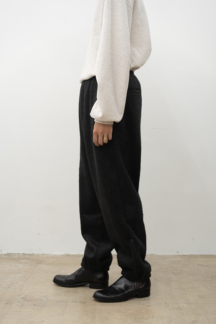blurhmsのブランドコンセプトにもなっている、着心地、丁寧さ、ほどよいリラックス感と使いやすさを兼ね備えたトラックパンツ。カジュアルになりがちなトラックパンツを、ポリエステル×シルクの上質なフリース生地を使用し、blurhmsらしいアレンジで上品なアイテムに仕上げてます。