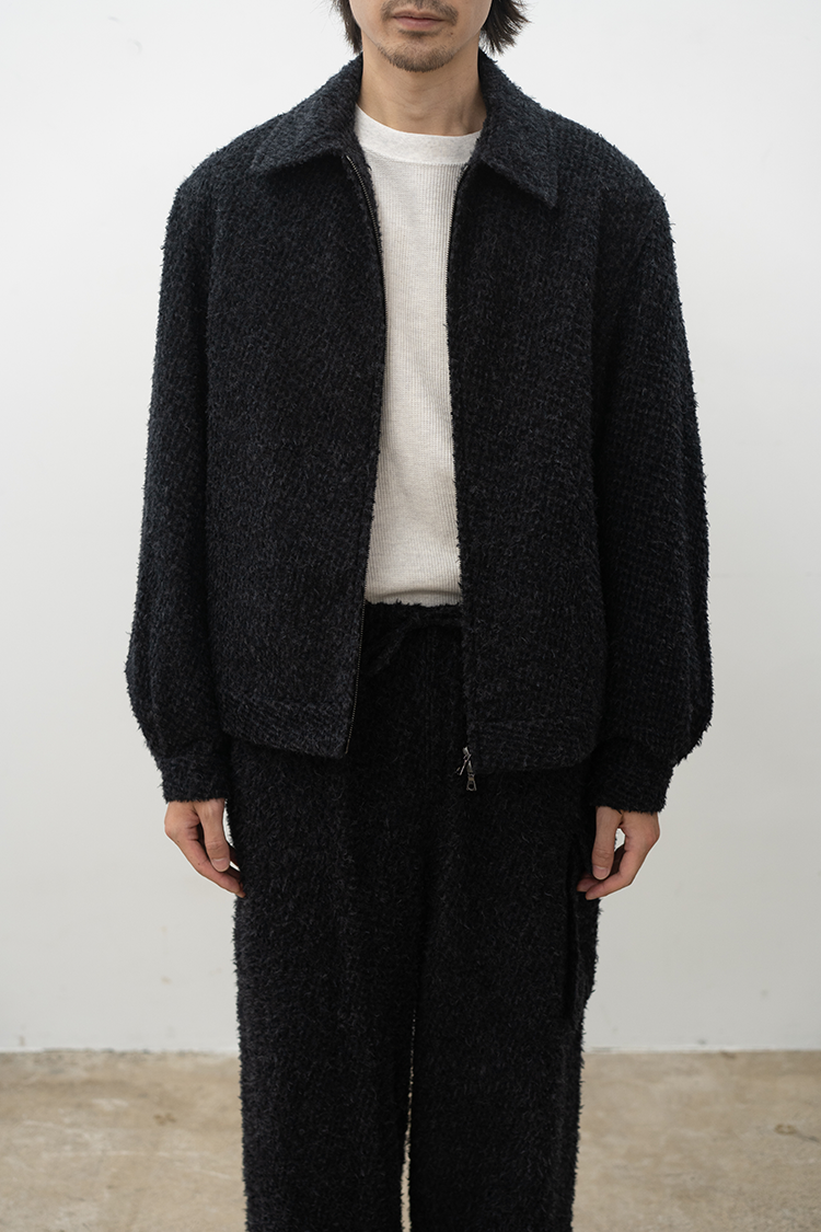 独特なテクスチャーが魅力のジップショートジャケット。