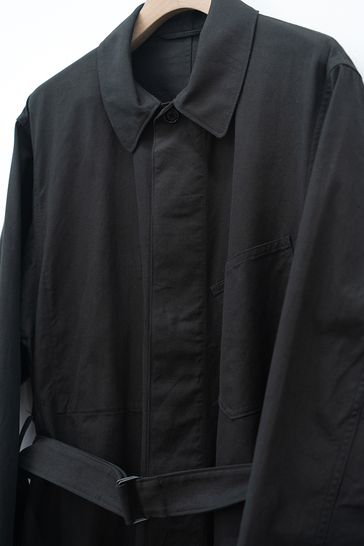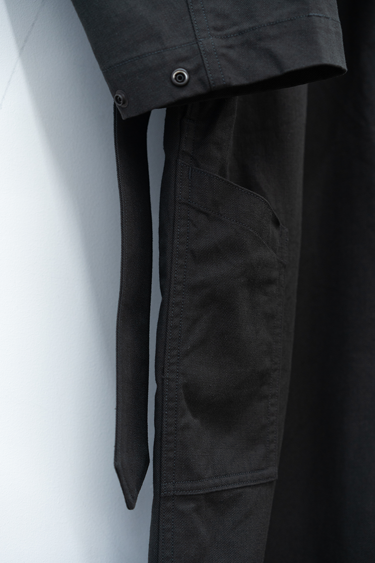 ナチュラルスラブのオーガニックコットンを使用してサージ目に織り、素材が持つ風合いを極力残すように仕上げをしたナチュラルでドライなタッチが特徴です。