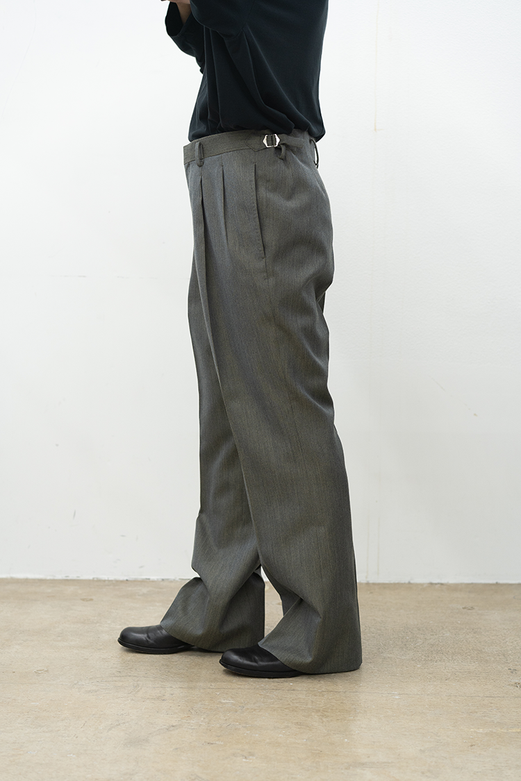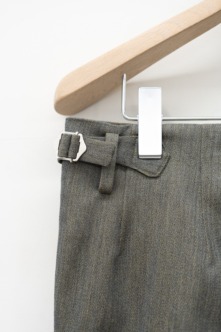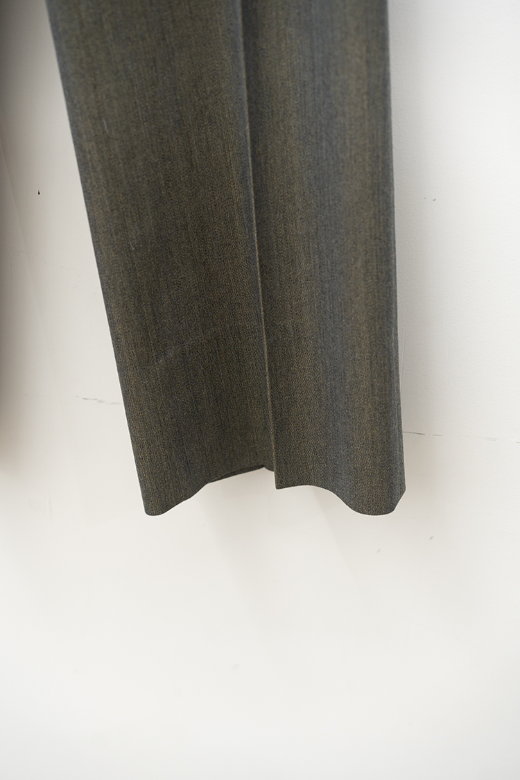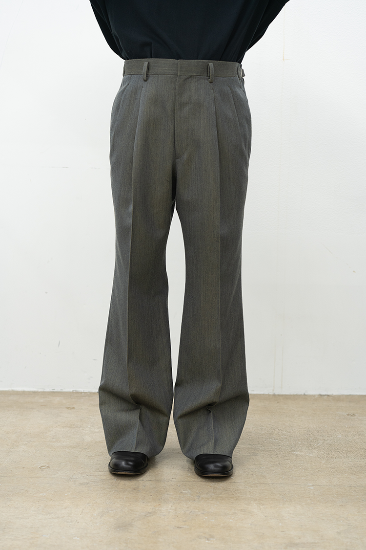 美しいフレアシルエットのトラウザーズ。 ウールレーヨンの絶妙な混率で柔らかさと シルエットの保形力を意図したオリジナル素材となっております。 サイドアジャスターでフィッティングの調整が可能です。 素材 WOOL 80% RAYON 20% 裏地 POLYESTER 100% ※着用詳細 173cm / CHACOAL YELLOW / size 2 サイズスペック 【1】ウエスト‐~78.0~cm 股上‐29.0cm 股下-73.0cm 裾口-26.0cm 【2】ウエスト‐~80.0~cm 股上‐30.0cm 股下-76.0cm 裾口-26.0cm 【3】ウエスト‐~84.0~cm 股上‐31.0cm 股下-78.0cm 裾口-27.0cm