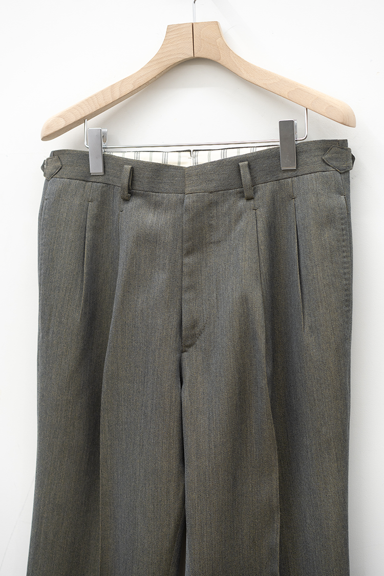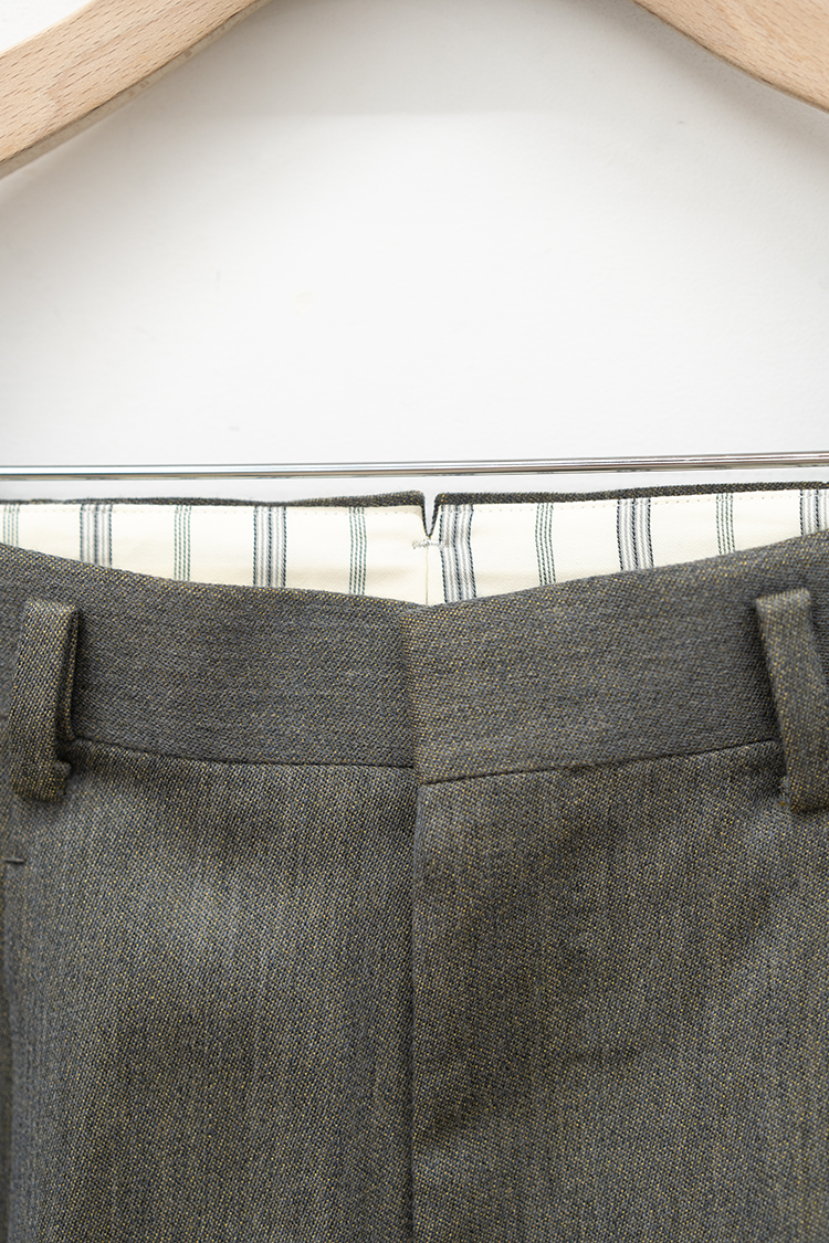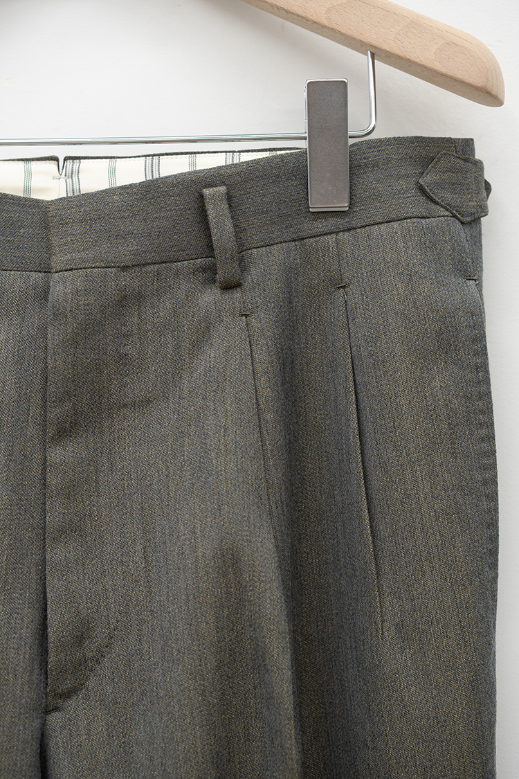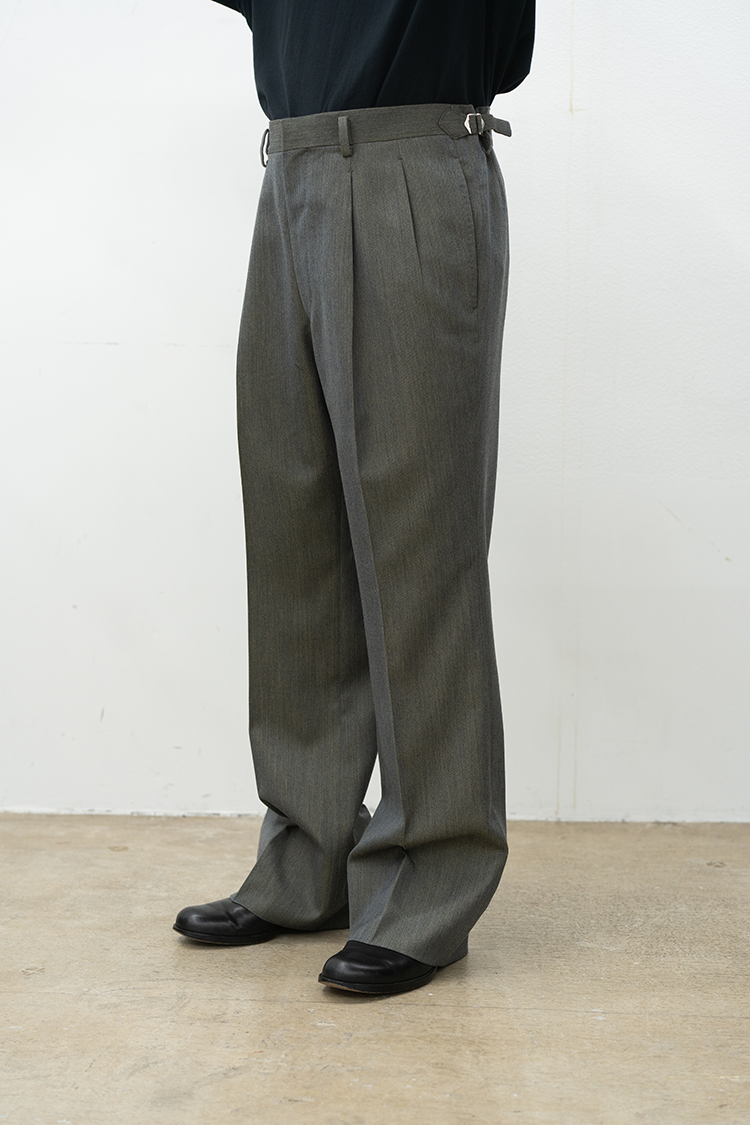 美しいフレアシルエットのトラウザーズ。 ウールレーヨンの絶妙な混率で柔らかさと シルエットの保形力を意図したオリジナル素材となっております。 サイドアジャスターでフィッティングの調整が可能です。 素材 WOOL 80% RAYON 20% 裏地 POLYESTER 100% ※着用詳細 173cm / CHACOAL YELLOW / size 2 サイズスペック 【1】ウエスト‐~78.0~cm 股上‐29.0cm 股下-73.0cm 裾口-26.0cm 【2】ウエスト‐~80.0~cm 股上‐30.0cm 股下-76.0cm 裾口-26.0cm 【3】ウエスト‐~84.0~cm 股上‐31.0cm 股下-78.0cm 裾口-27.0cm