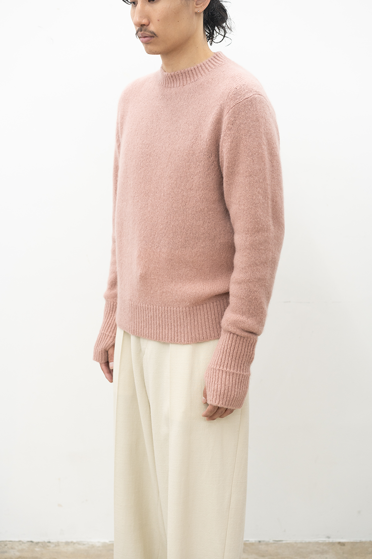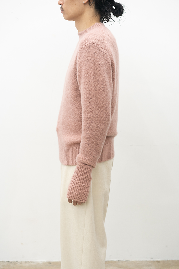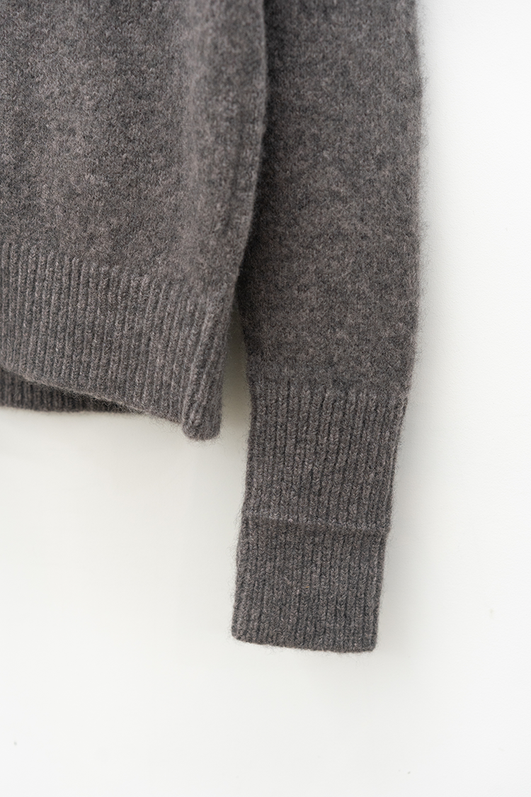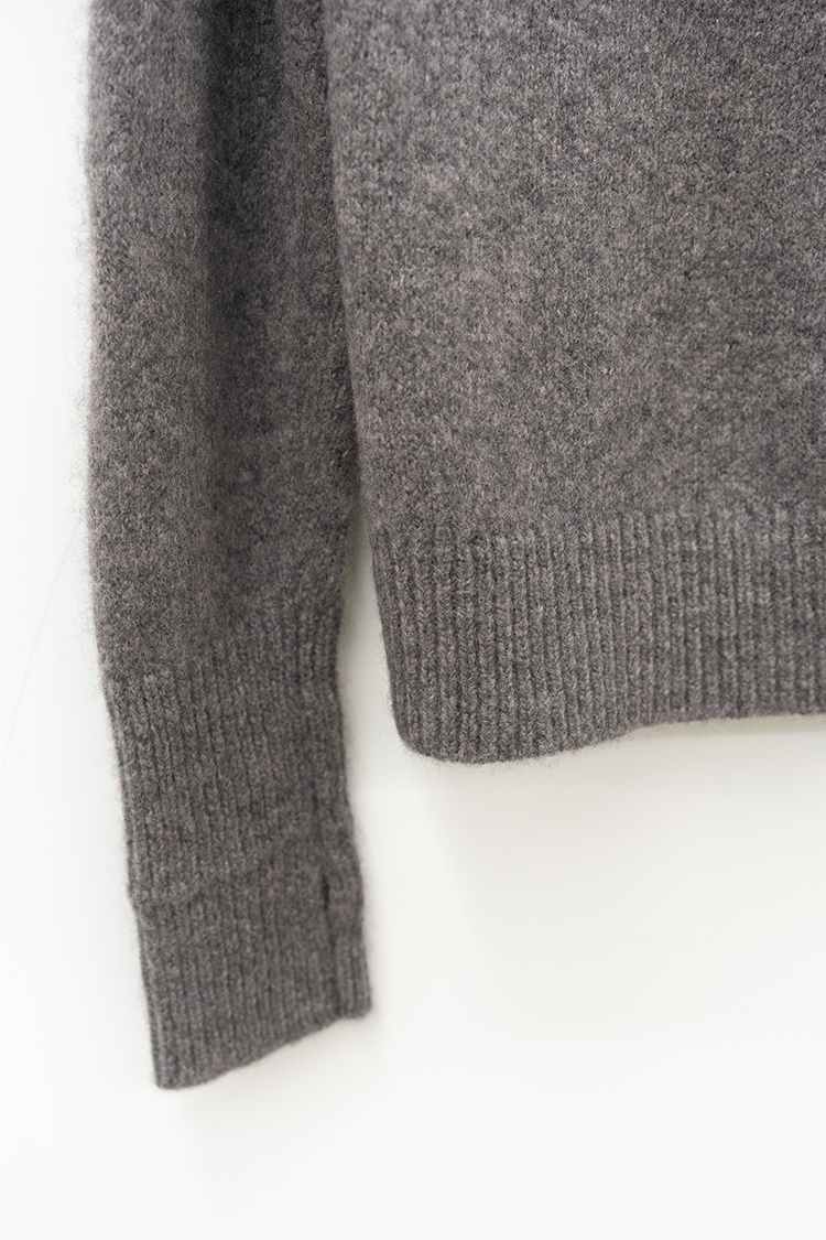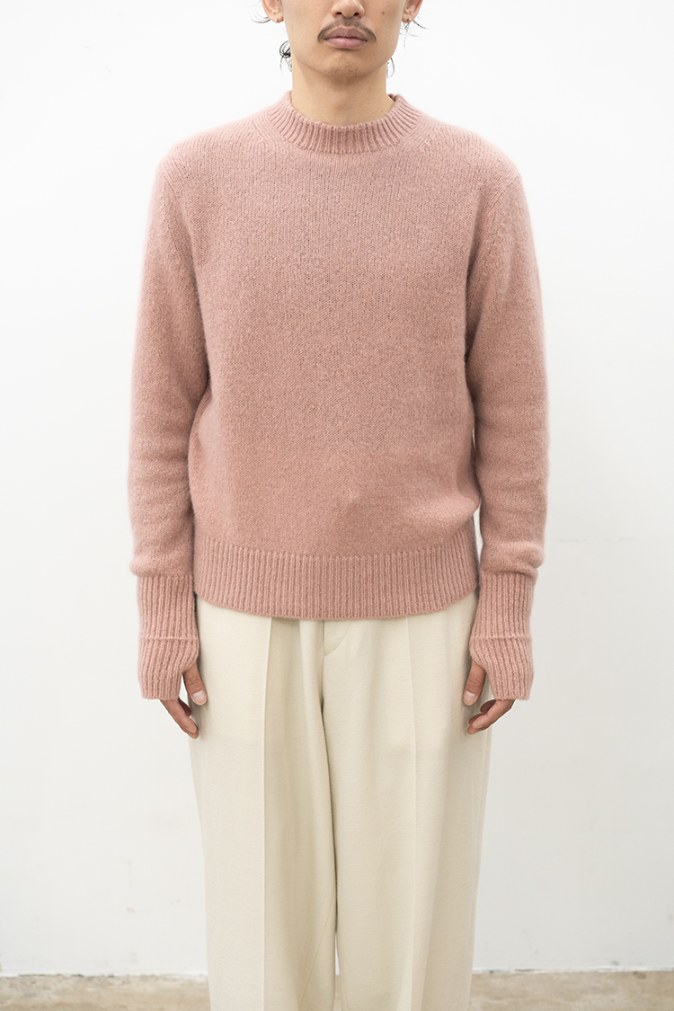 モックネックとクルーネックの間のニュアンスで絶妙な印象に仕上がっています。