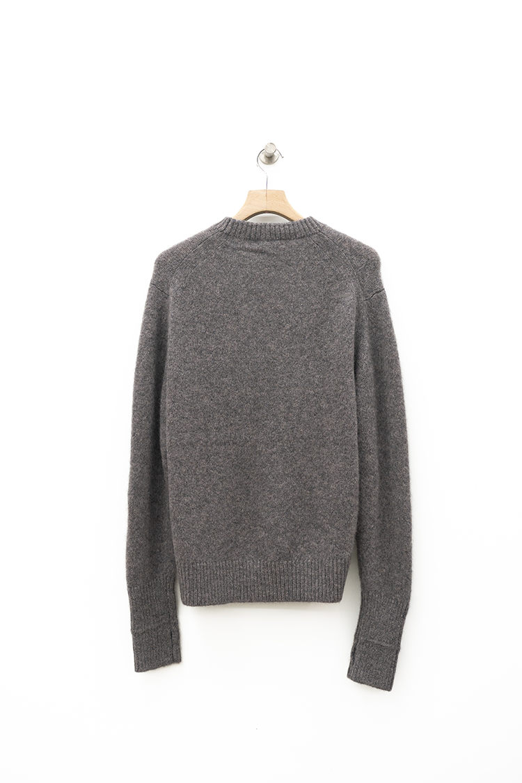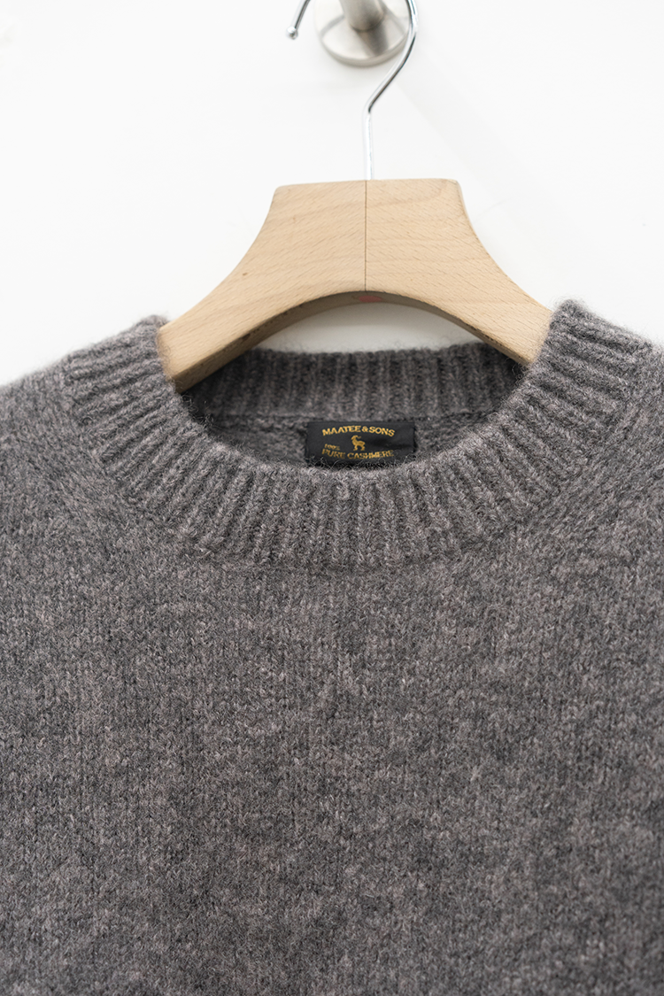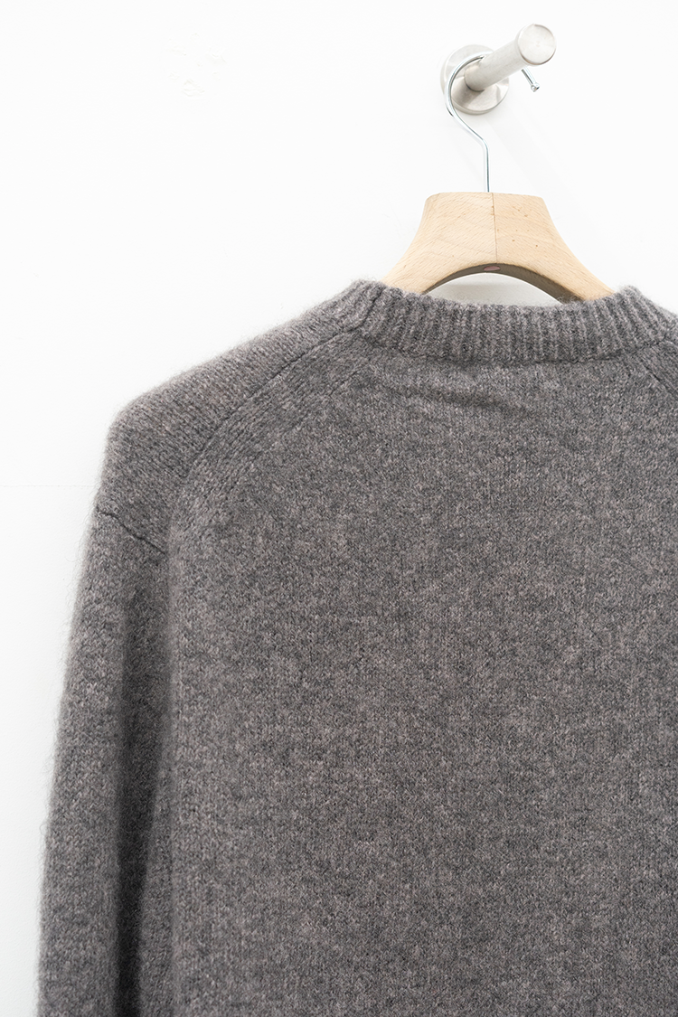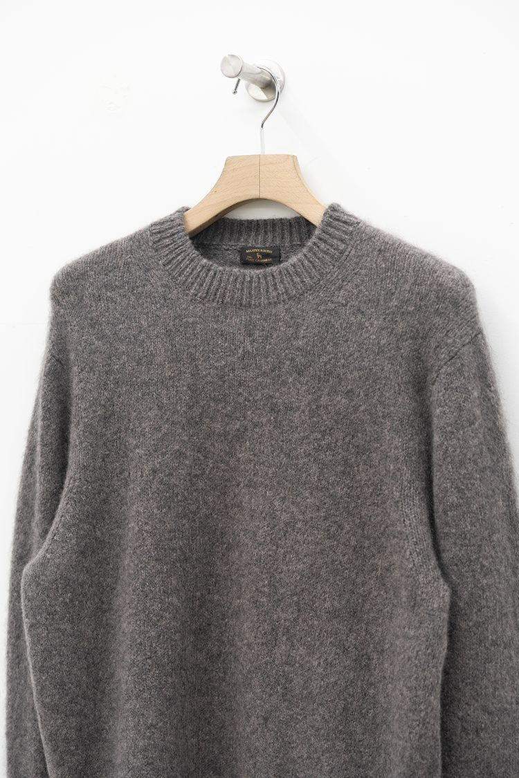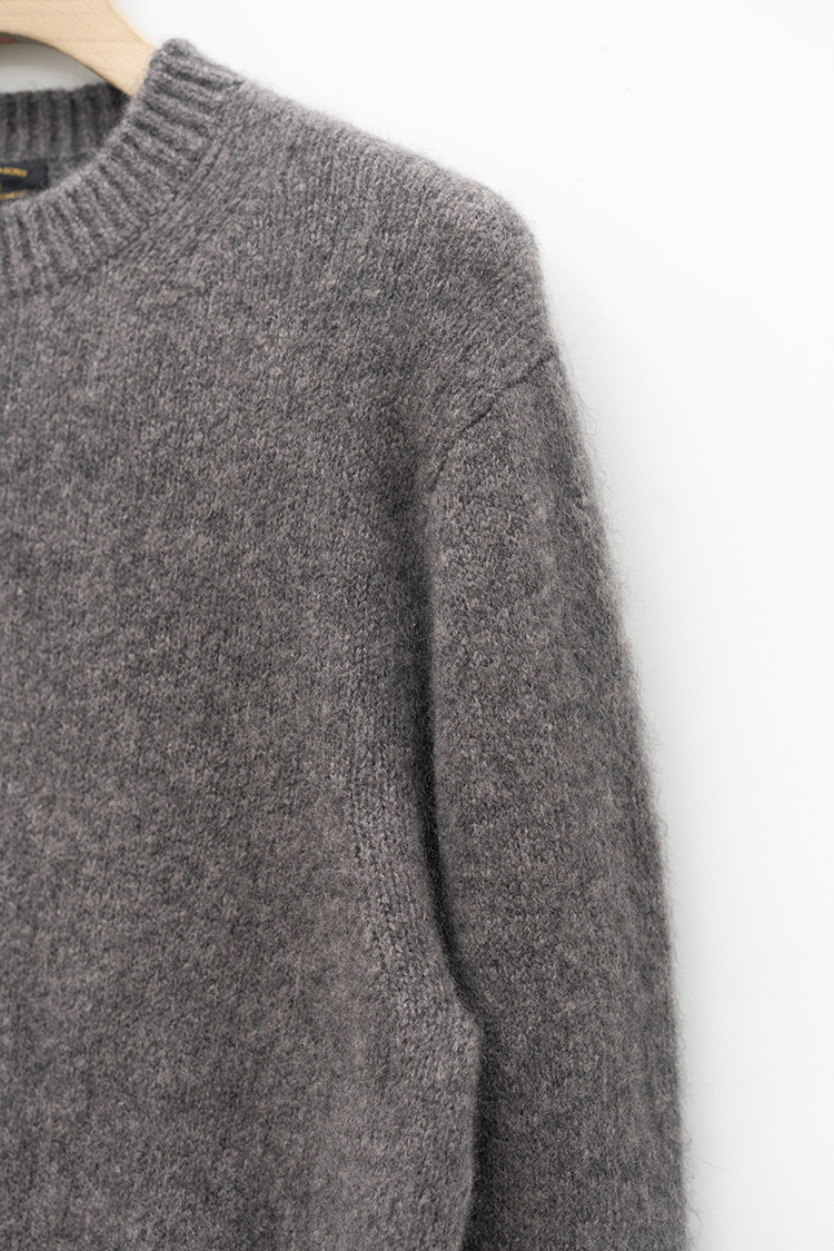 モックネックとクルーネックの間のニュアンスで絶妙な印象に仕上がっています。