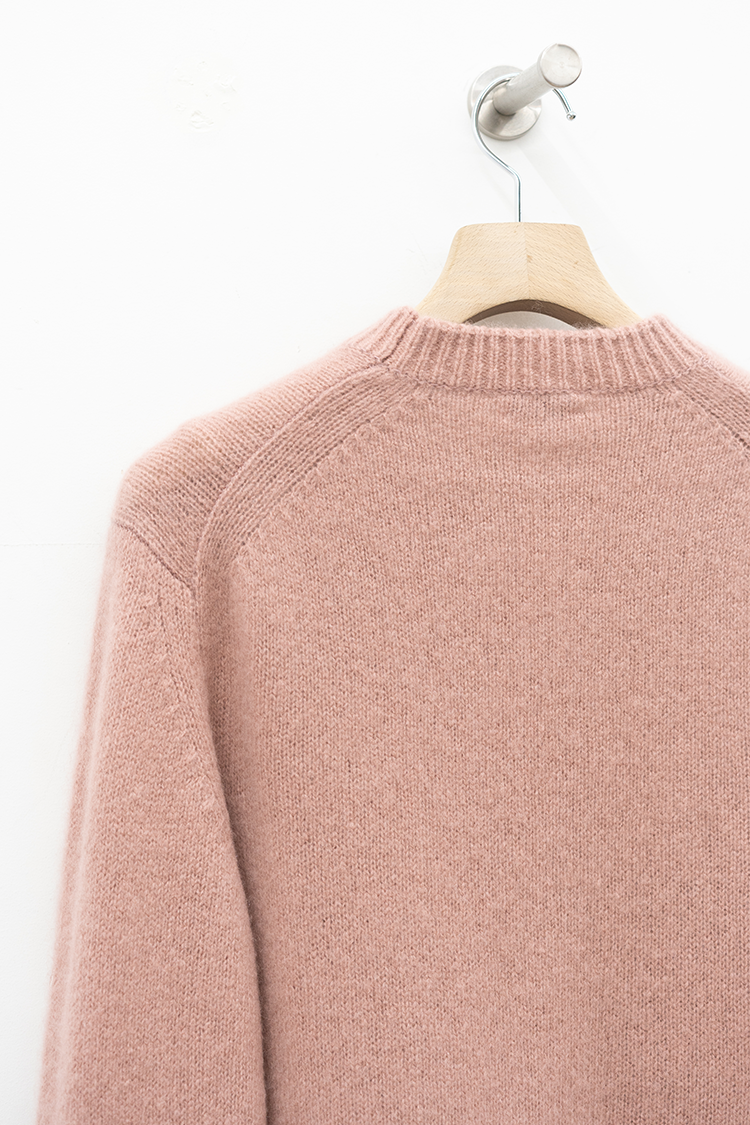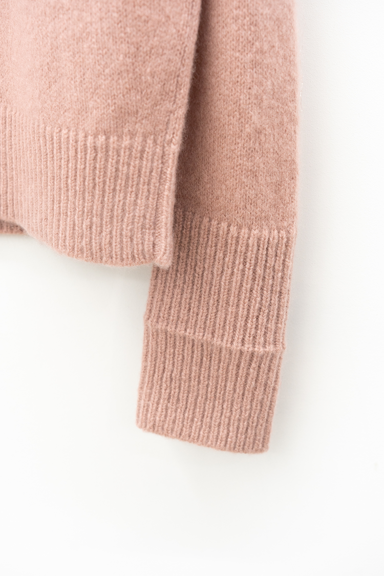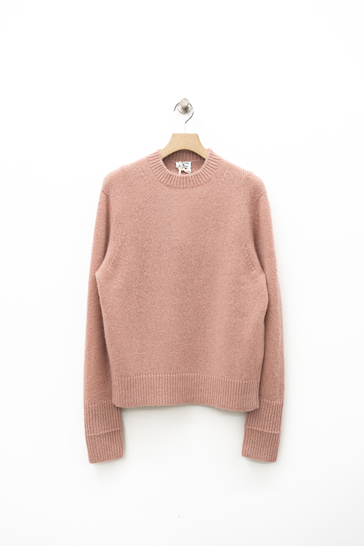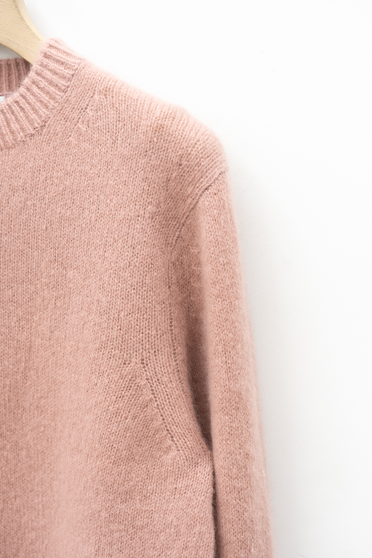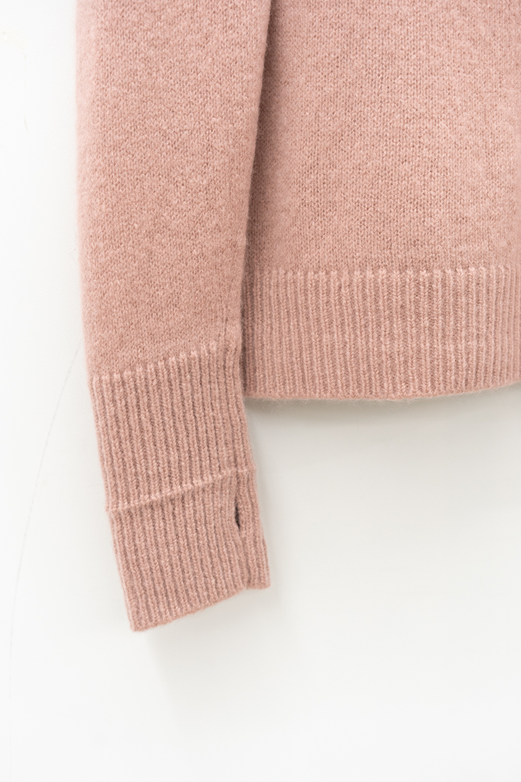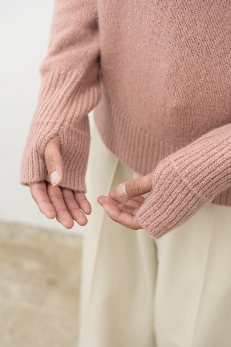 モックネックとクルーネックの間のニュアンスで絶妙な印象に仕上がっています。