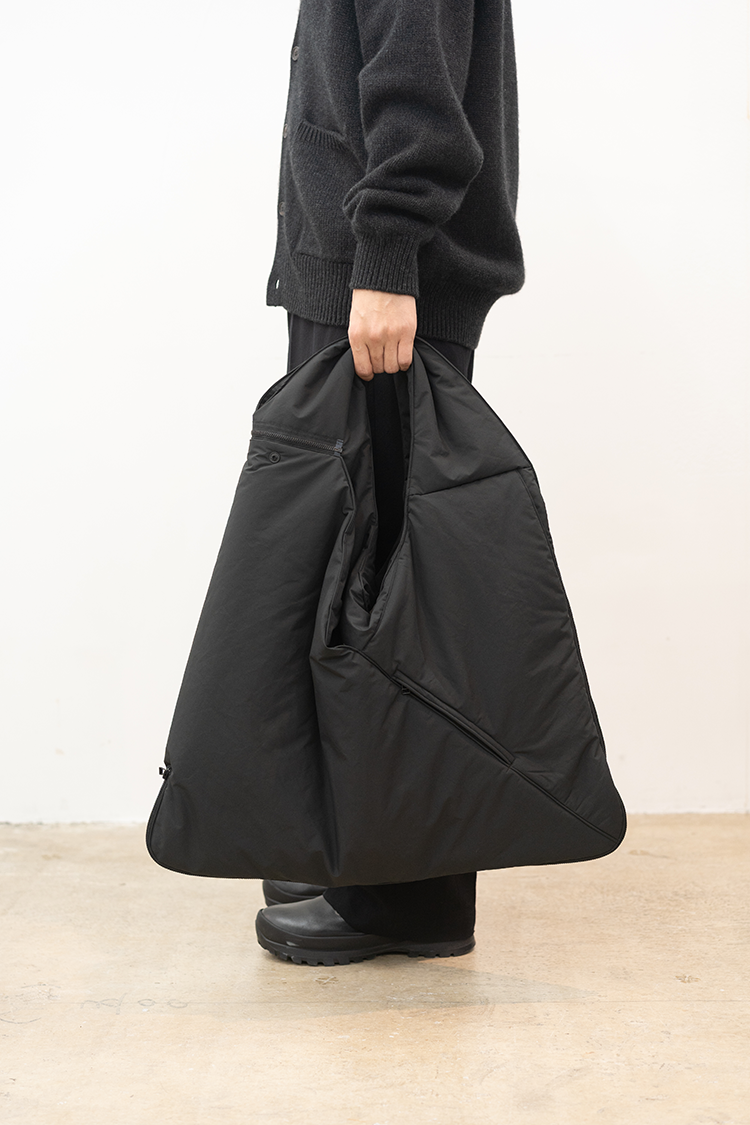 ウェアラブルバッグ=着用できるバッグは、三角形のバッグのファスナーを全開にすることでベストとして着用できる2WAY仕様の設計になっています。どちらの形状が主役という訳ではなく暑ければ脱いでバッグに、荷物が空っぽで邪魔ならベストに、と状況に応じて姿を変える事ができます。