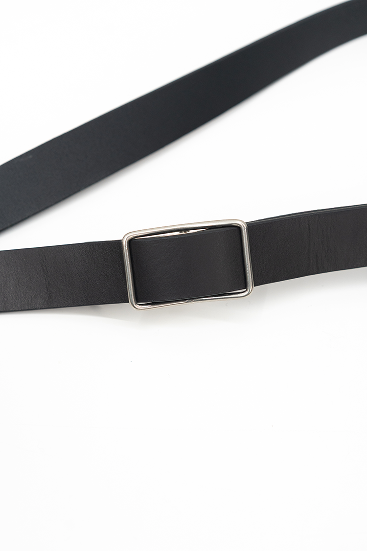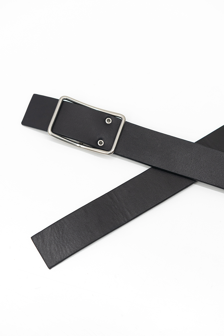 バックルについたプレートが、振子の原理でベルトを固定する仕組みです。 ピンを必要とせず、細かなサイズの調整が可能。 長く設定された帯はスタイルの幅が広がると共に、サイズの制限を無くし全ての人が着用できるベルトです。 素材 牛革 サイズスペック 【F】全長-130.5cm 幅-3.0cm