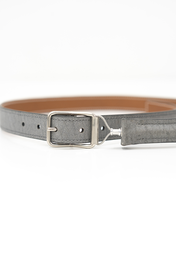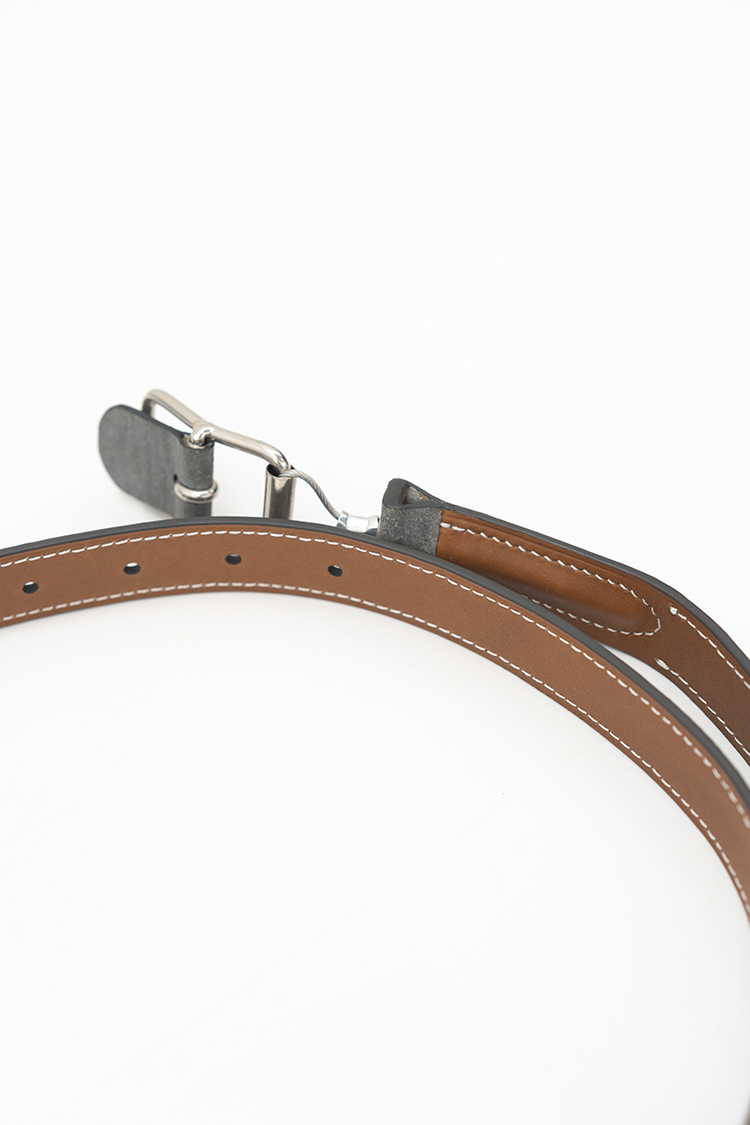 立ち座りの動作に伴う負担を和らげ、快適な着用感をサポートするサスペンション構造を取り入れたリバーシブルベルトです。 バックルを回転させることで、異なる2つの素材の表情を気分や装いにあわせて使い分けることができます。表面には、石のような質感が際立つコンクリート仕上げの革を使用しています。 素材 牛革 サイズスペック 【F】全長-112.0cm 幅-.0cm 最小ベルト穴-80.5cm〜最大ベルト穴-90.5cm