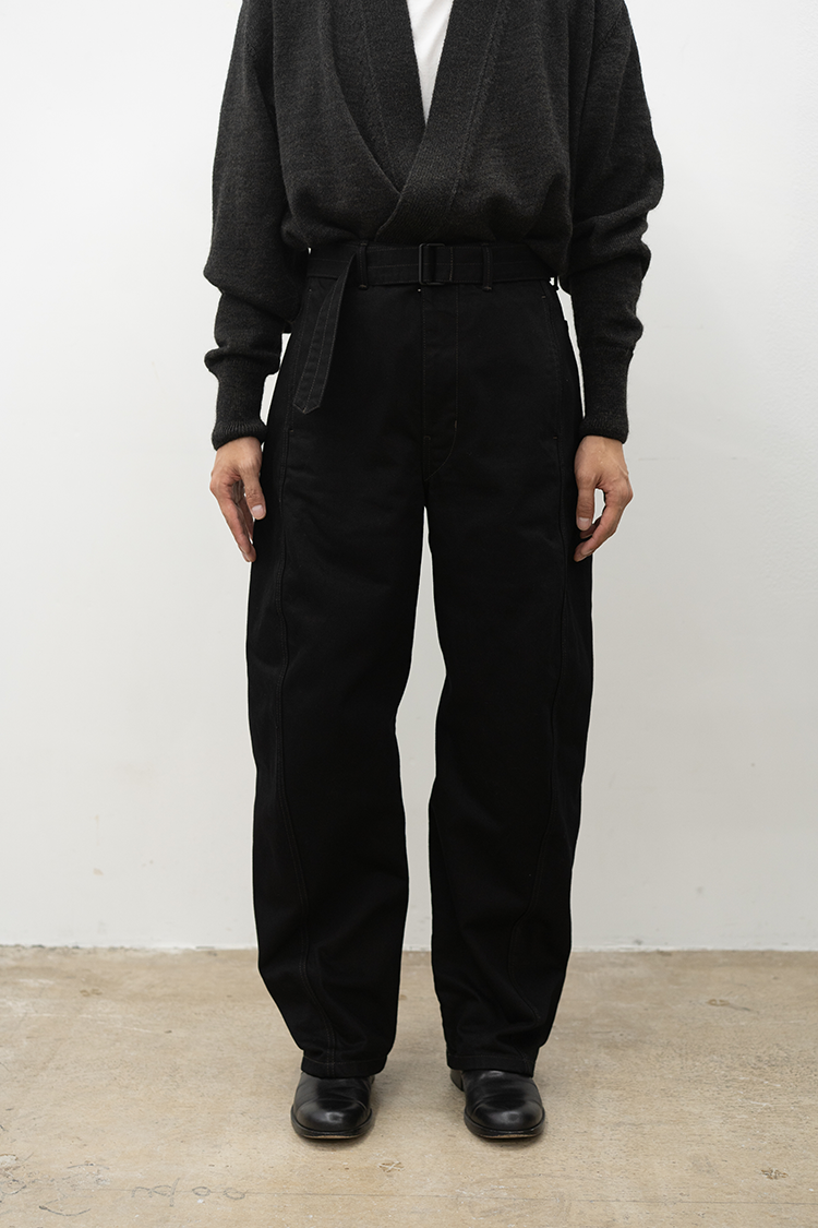 サイドシームが裾に向かいフロントに落ちていく独特なデザインと、