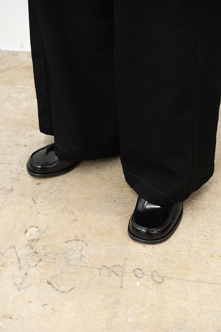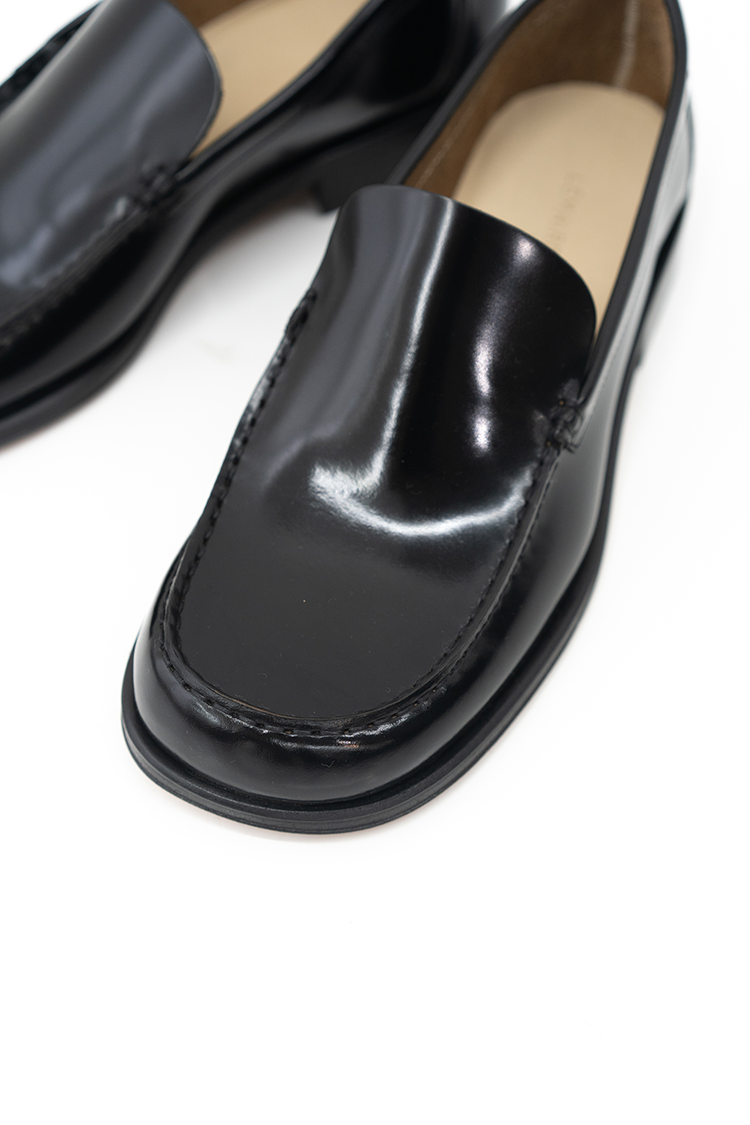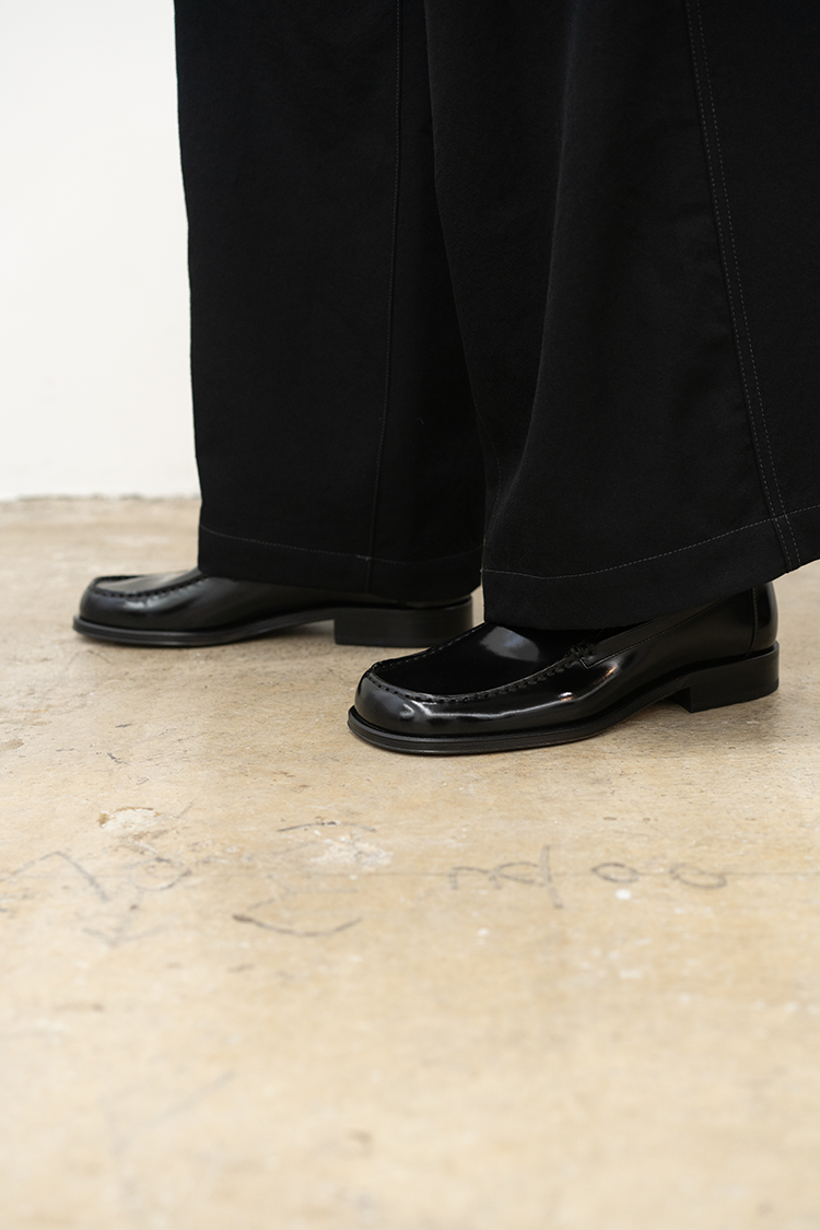 光沢のある滑らかなLWG認定のカーフレザーを使用したローファー。 スリッポンモデルの長めのスクエアトゥ。 トーンオントーンのトップステッチのディテールで、 アウトソール・インソール・ライニングは全てレザーが採用。 フォーマルな靴の世界にインスピレーションを得た、 シャープなシルエットが足元にモダンな印象を与え、 幅広いスタイルに合うニュークラシックな一足です。 素材 CALF LEATHER サイズスペック(推奨サイズ) 【39】(24.5-25.0cm) 【40】(25.5-26.0cm) 【41】(26.5-27.0cm) 【42】(27.0-27.5cm)