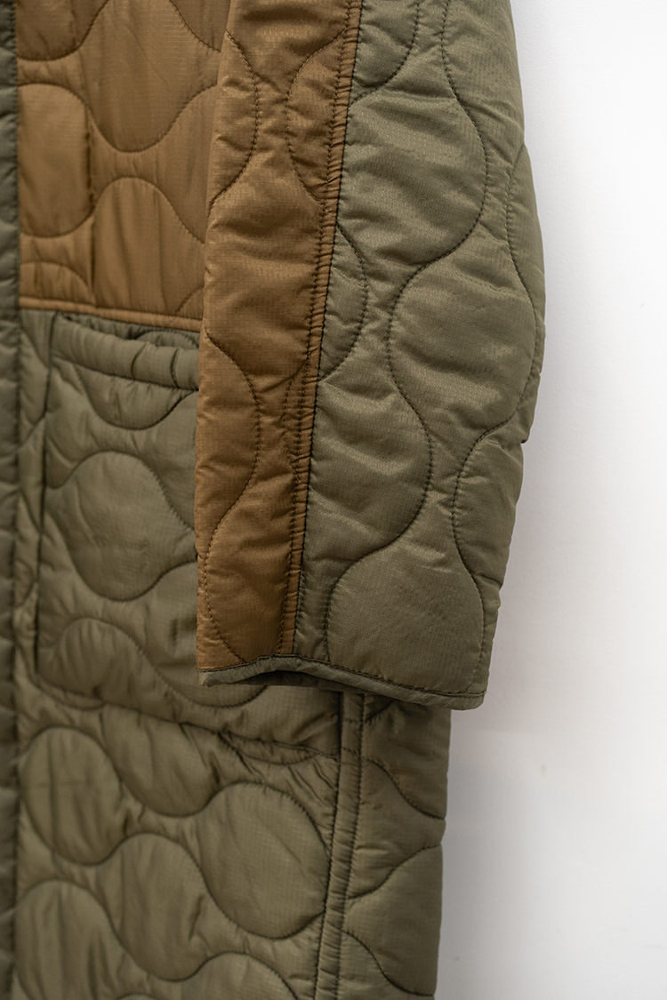 ロング丈のライナージャケット。 絶妙な配色とブランドが得意とするパターンワークが光る逸品。 左胸には刺繍入り。 素材 POLYAMIDE 100% 着用詳細 173cm / BEIGE / size S サイズ 【S】着丈-103.0cm 身幅-62.0cm 肩幅-53.0cm 袖丈-62.0cm 【M】着丈-104.0cm 身幅-65.0cm 肩幅-55.0cm 袖丈-64.0cm
