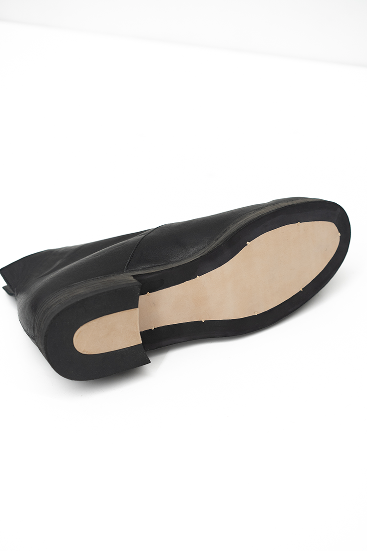 重衣料を纏った際にも負けない足元を演出するために、ソール自体に厚み持たせたデザインへとアップデート。傾斜の少ないフラットな木型を用いることで、ソール前部に厚みを持たせつつ、ヒール高は高くなりすぎない仕上がりになっています。