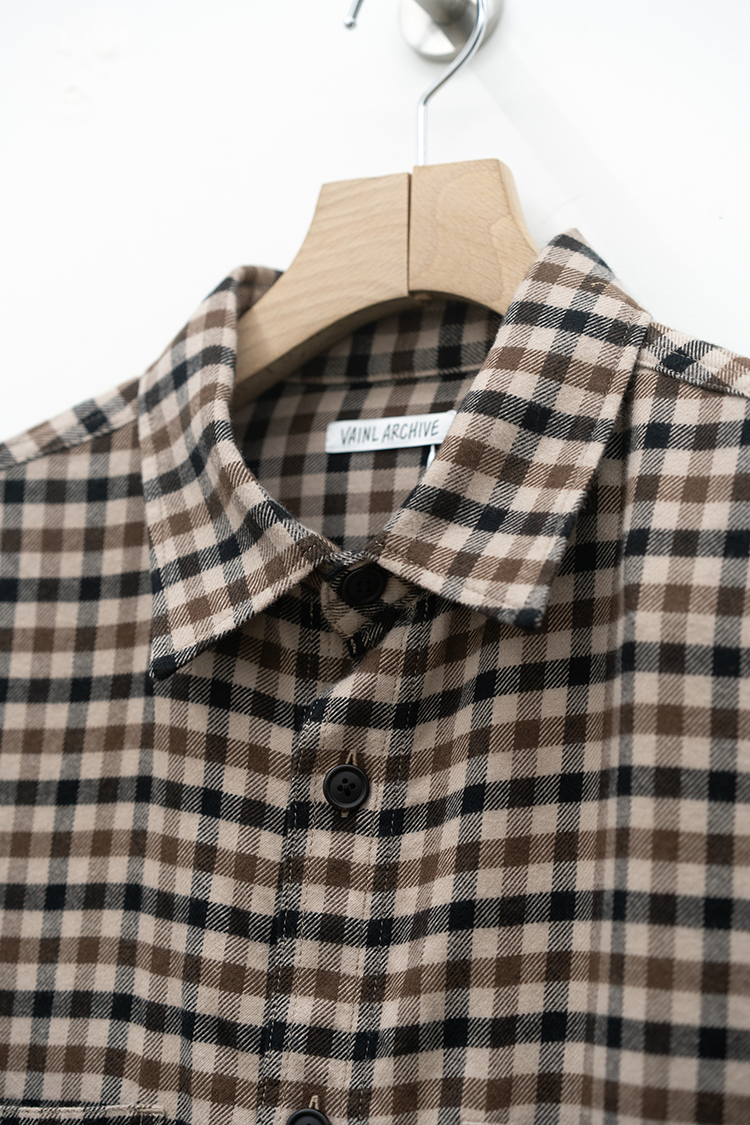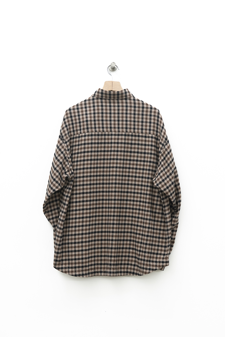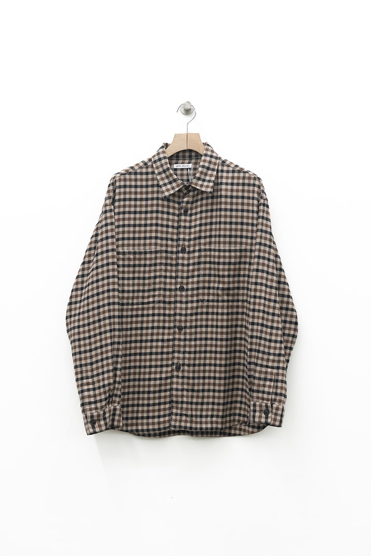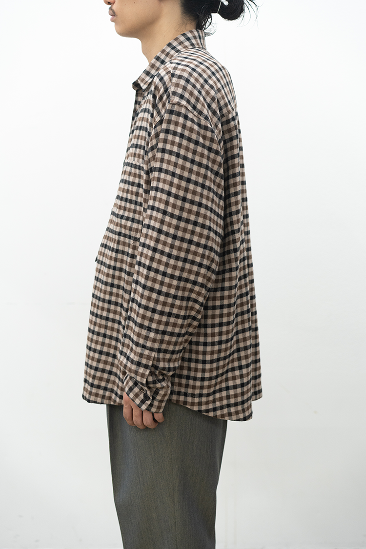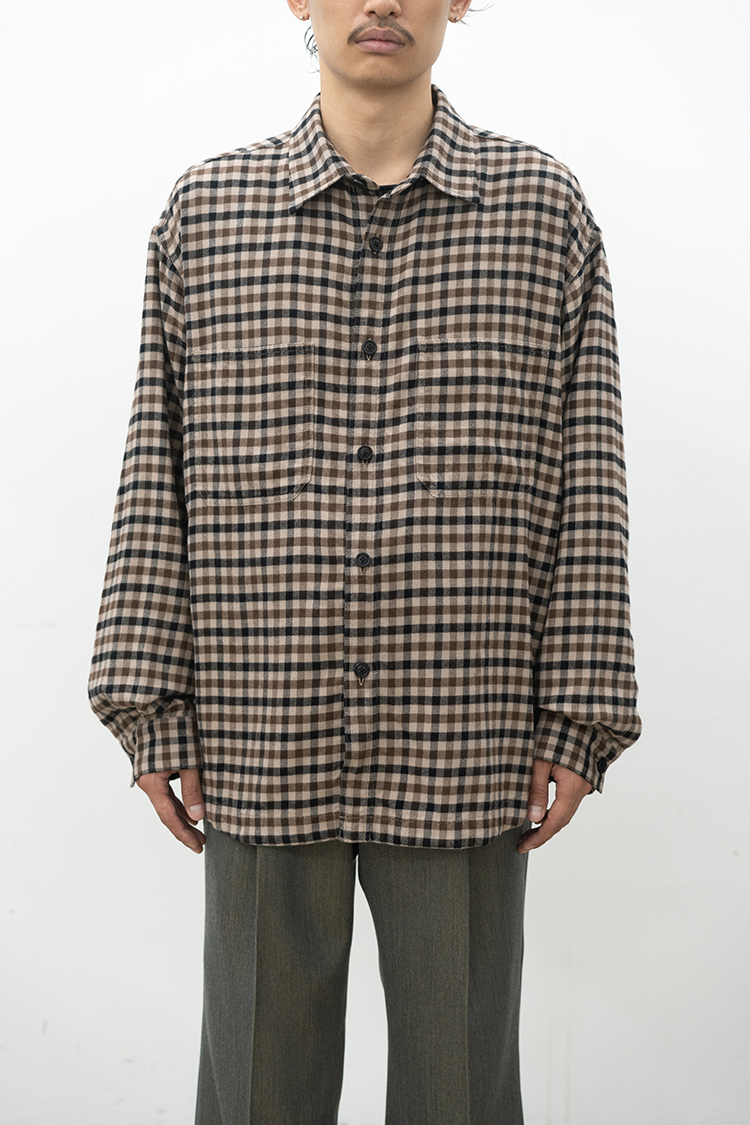 ドレスシャツをベースに仕立てたチェックシャツ。 上品な仕立てながら、両胸に配したパッチポケットによって程よくカジュアルダウンしたデザインが特徴。60双糸を経糸に使用したタッターソール、仕上にシルクプロテイン加工することで肌触りの良い上質なヌメリ感を出しております。 素材 COTTON 100% ※着用詳細 173cm / CHECK / SIZE M サイズスペック 【M】着丈‐78.0cm 身幅‐65.0cm 肩幅‐57.0cm 袖丈-61.0cm