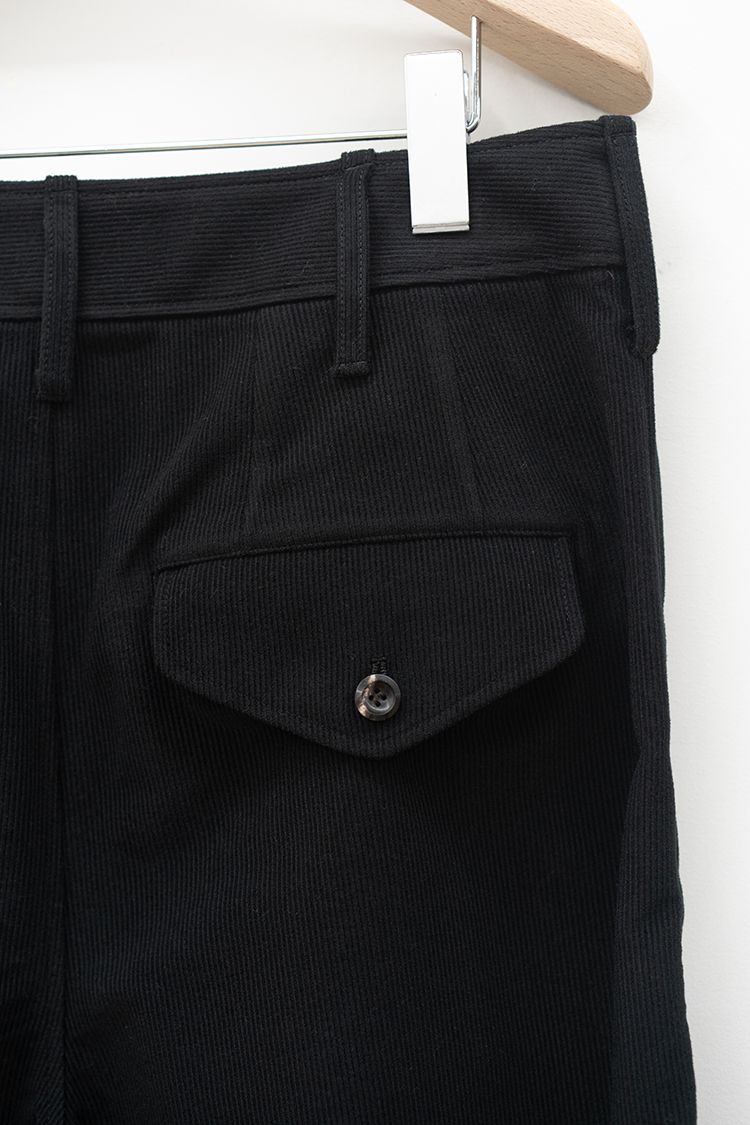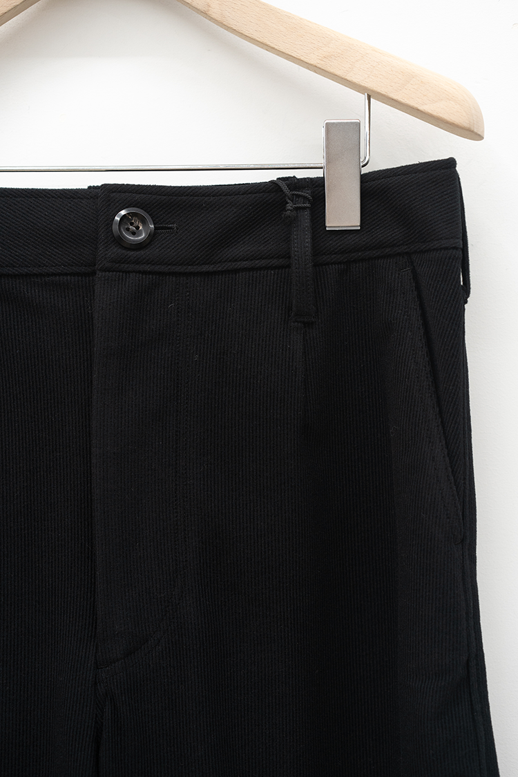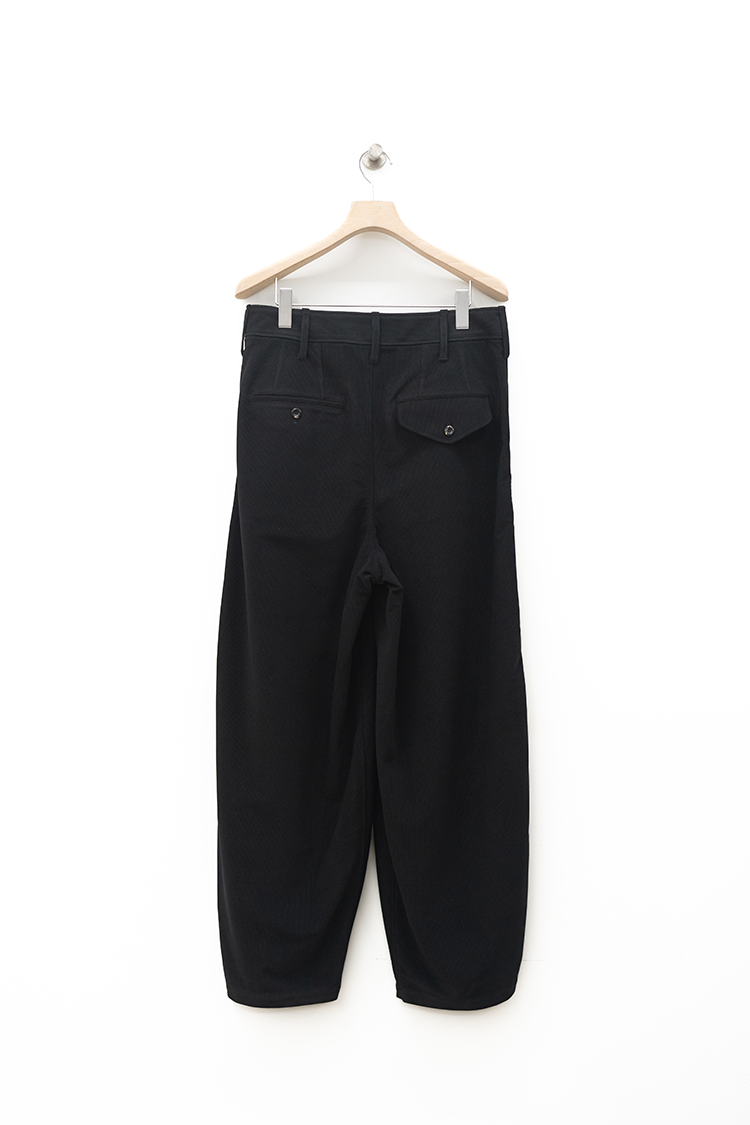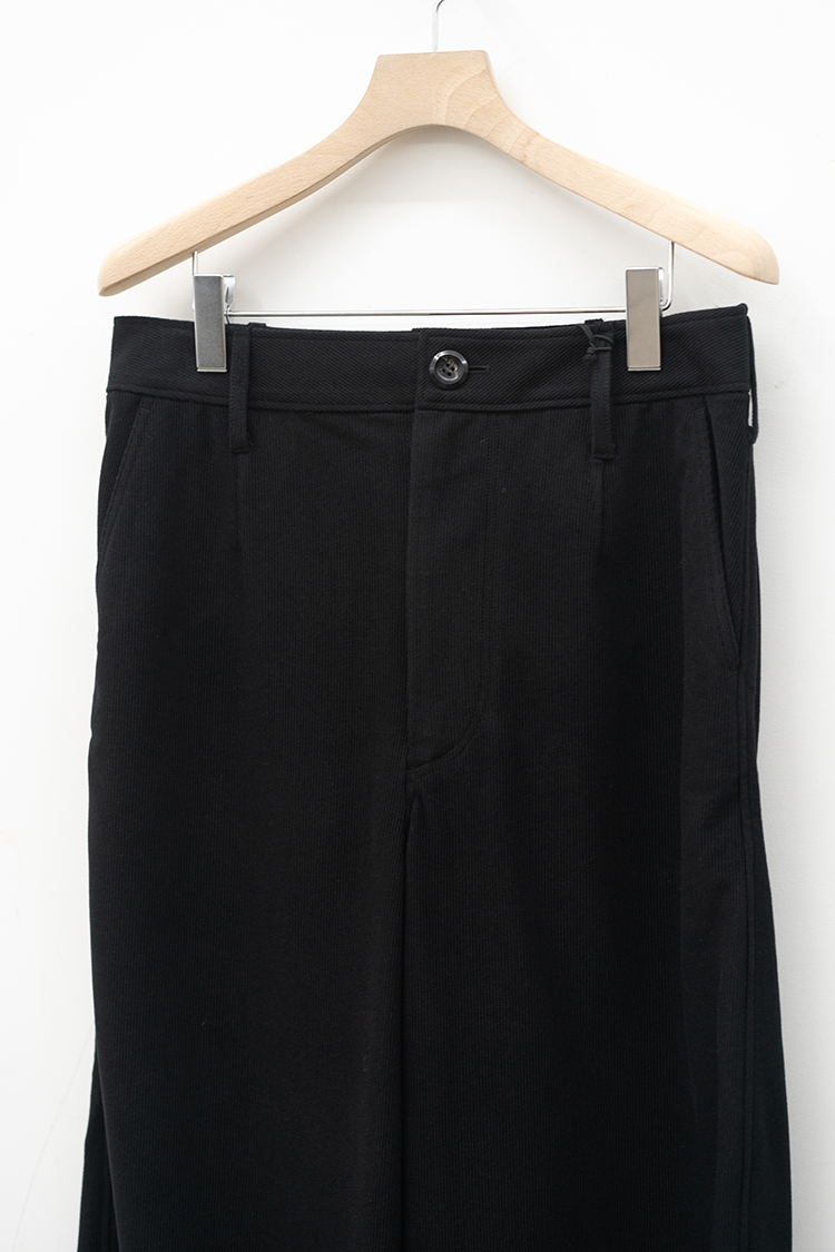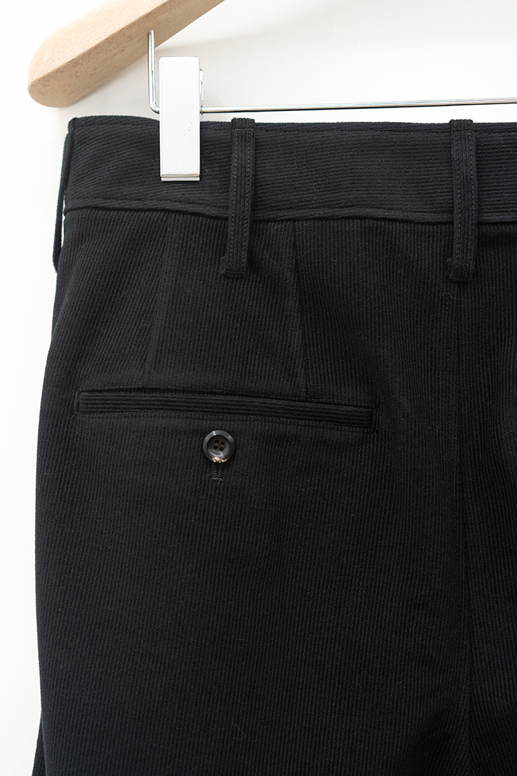 蓄熱機能のあるコーデュロイ素材を使用したワイドバレルパンツ。ポリエステル素材を使用する事で、形状安定性と綺麗な光沢感を失う事なく、コーデュロイ素材のデメリットを解消した風合いを実現。ヒップから裾にかけてやや丸みのあるデザインとなっており、ダイナミックで立体感のあるシルエット。現代的なシルエットをTHE RERACSらしく上品に仕上げています。 素材 POLYESTER 100% ※ 着用詳細 173cm / BLACK / size 46 サイズスペック 【46】ウエスト‐ 80.0cm 股上‐33.0cm 股下‐74.0cm 裾幅‐24.0cm 【48】ウエスト‐ 86.0cm 股上‐34.0cm 股下‐75.0cm 裾幅‐25.0cm