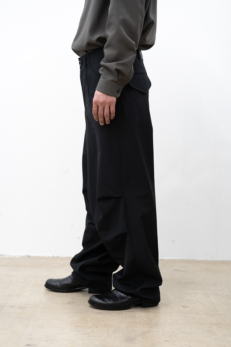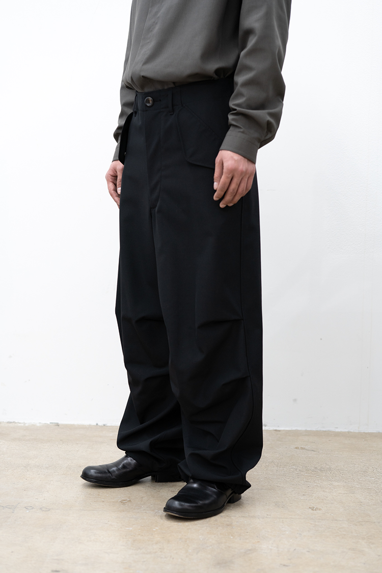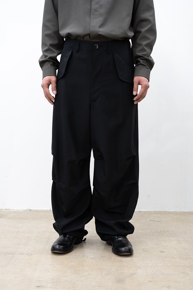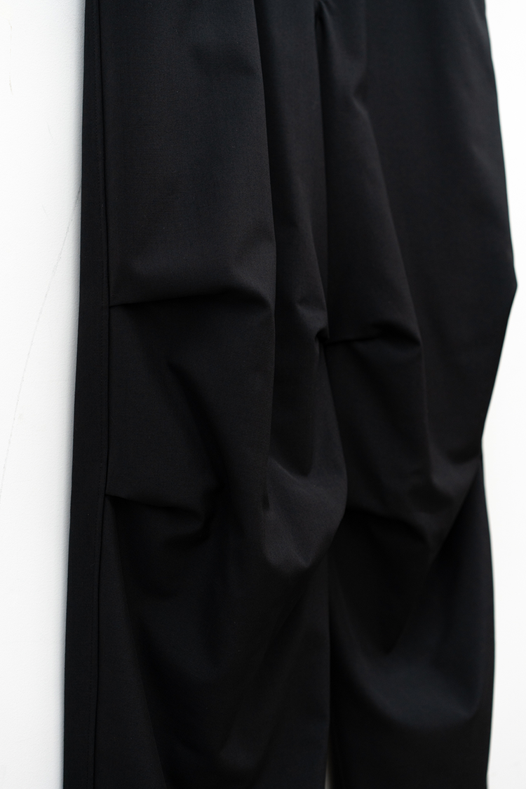 裾のドローコード、膝部分の両サイドに入ったタックなど、