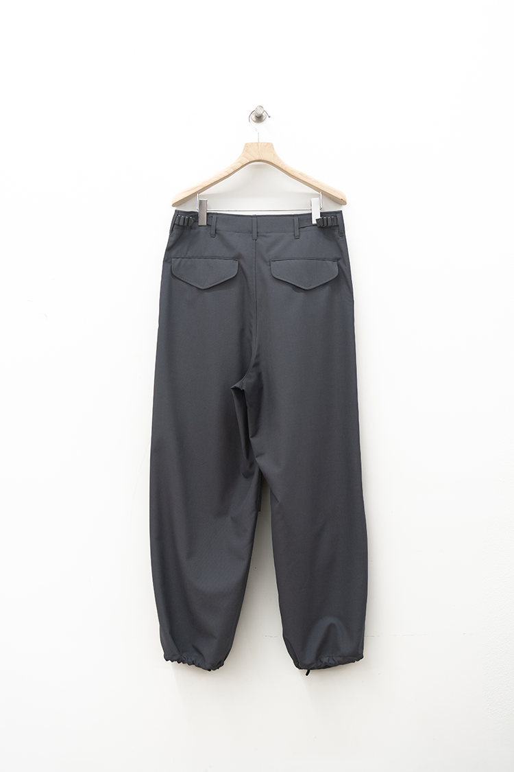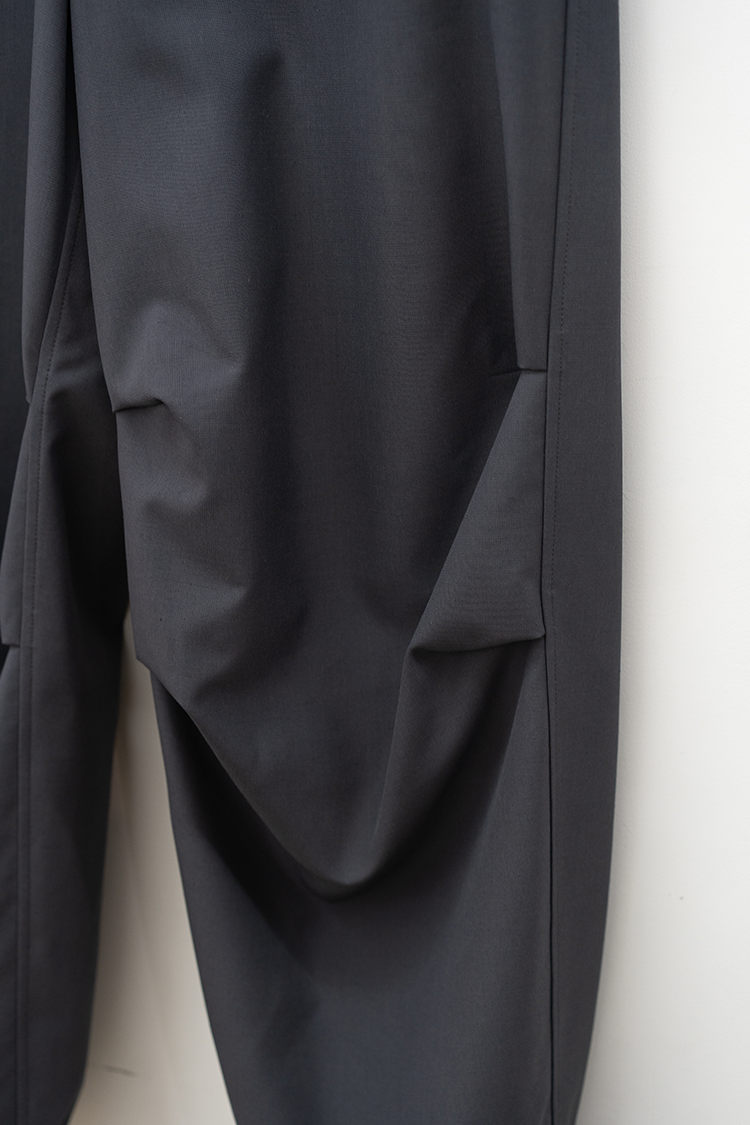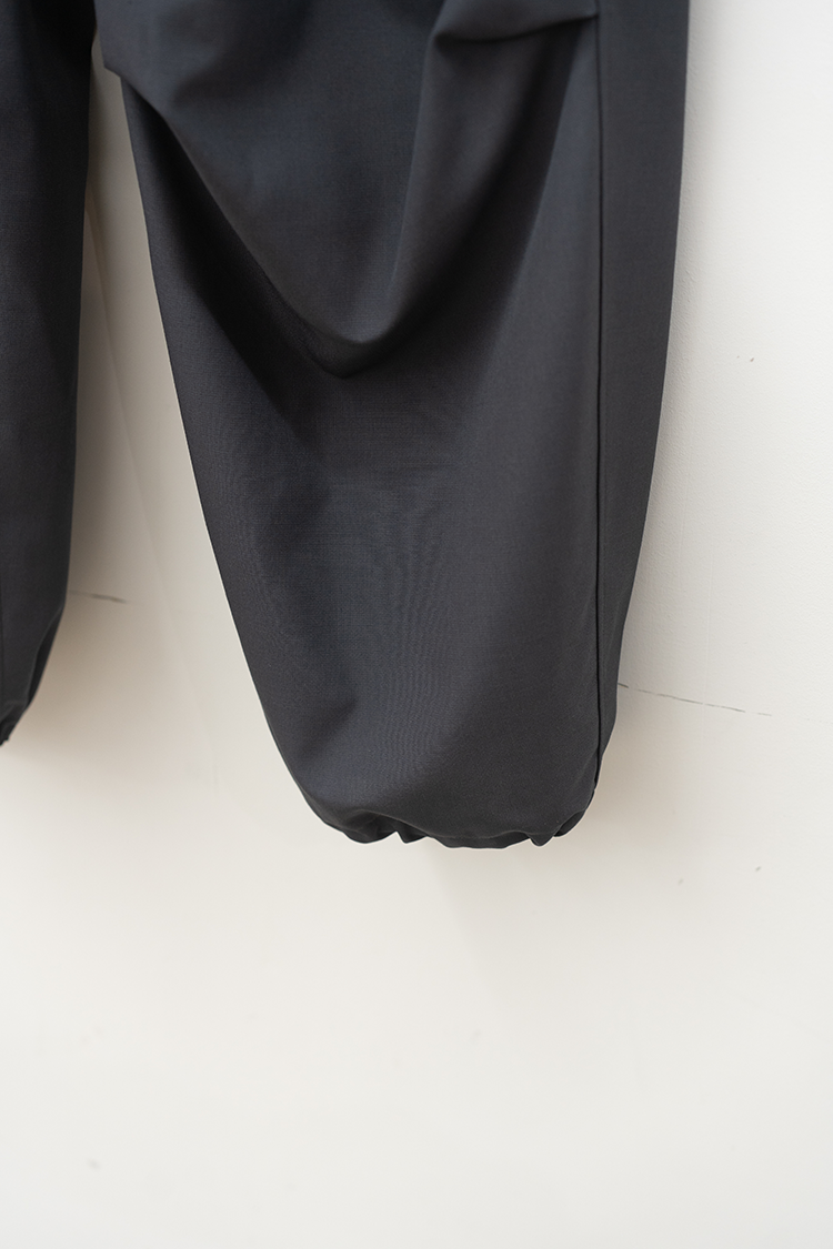 裾のドローコード、膝部分の両サイドに入ったタックなど、