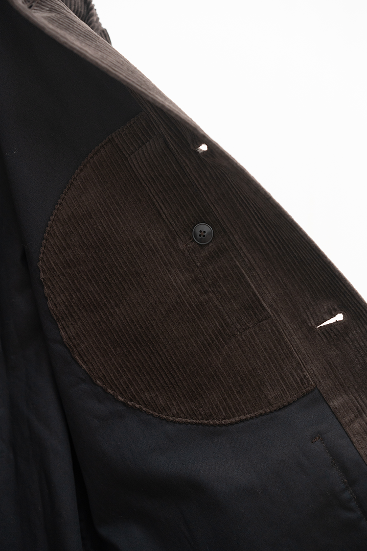 そしてボタン留めの内側のカーブした胸ポケットが特徴。