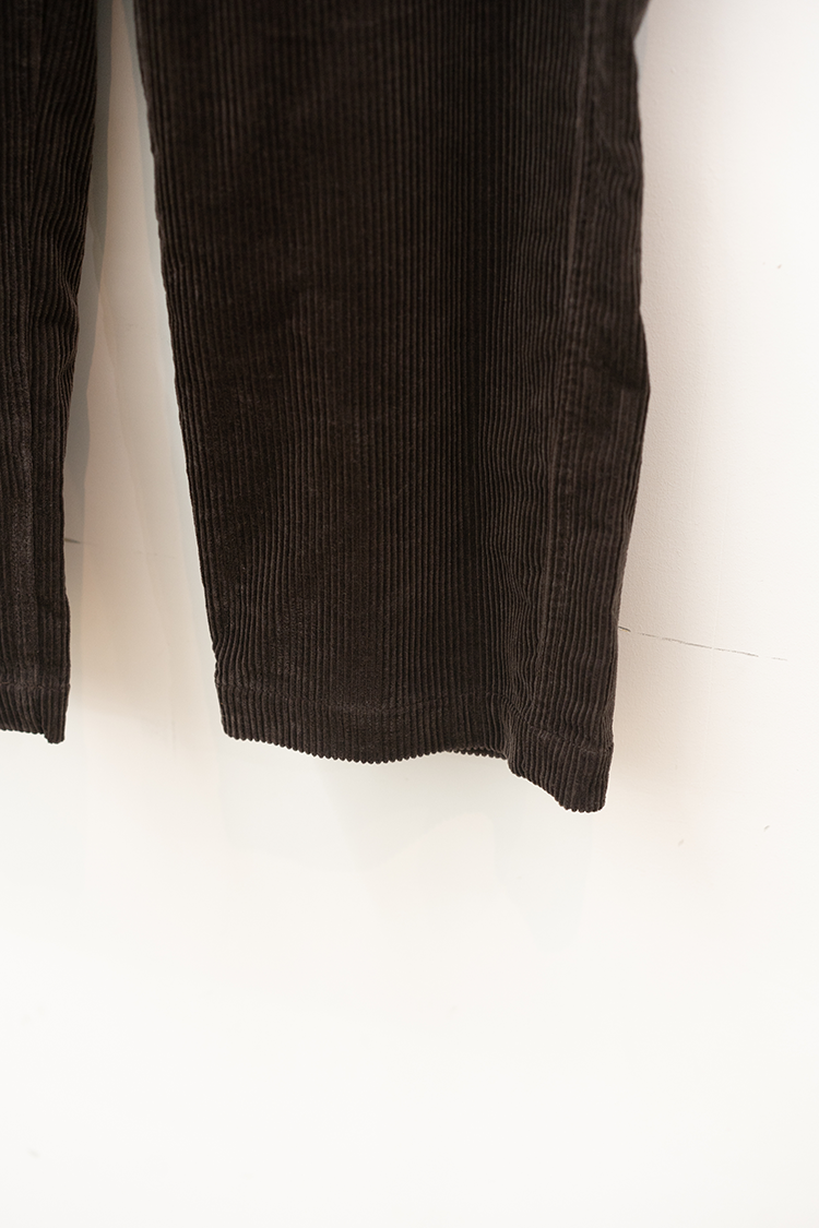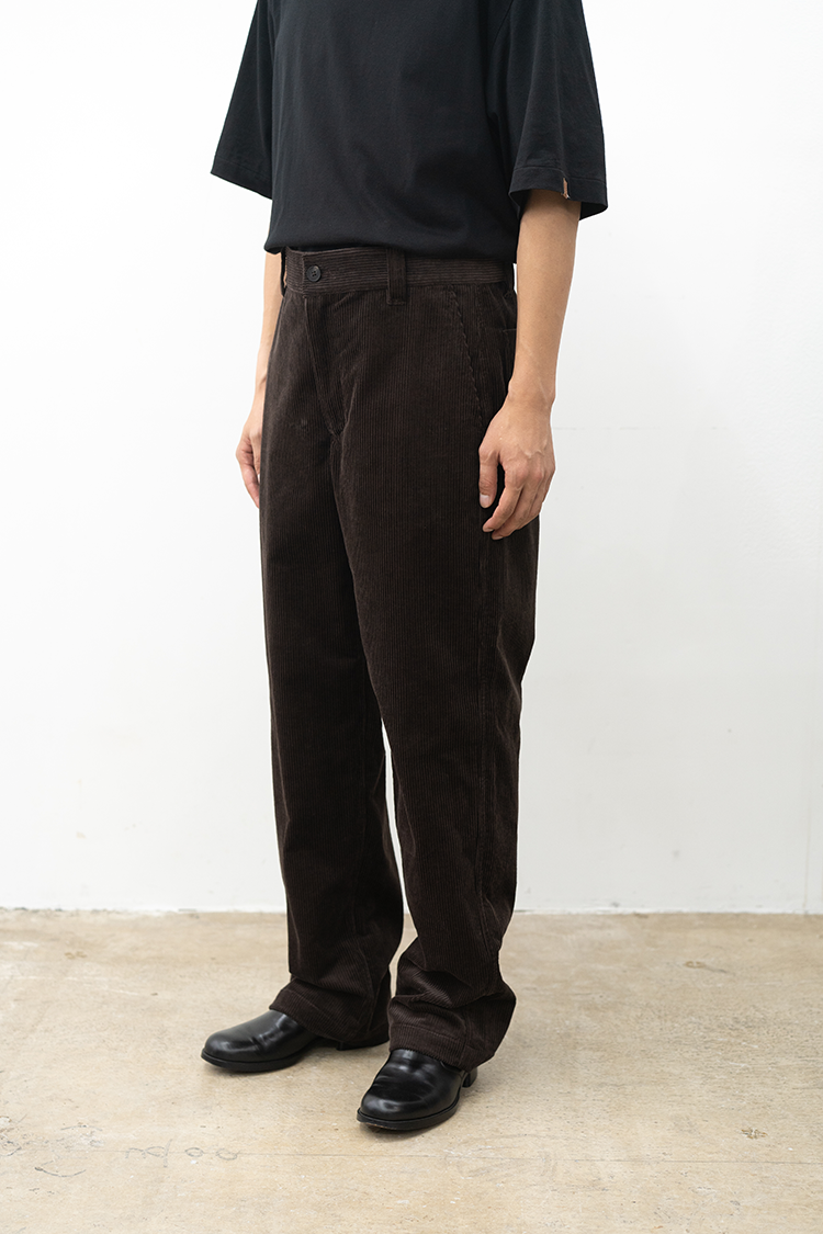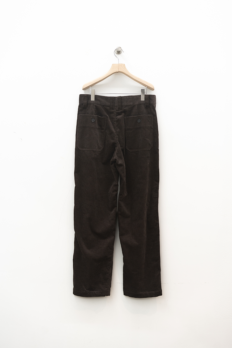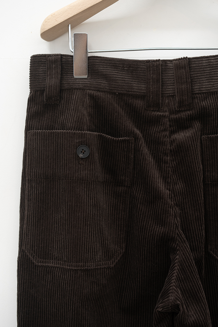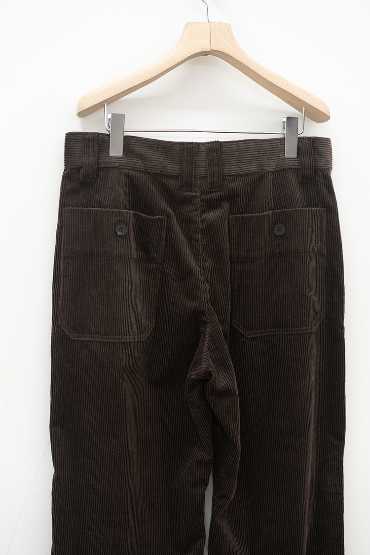 ストレートシルエットのコーデュロイパンツ。 ミリタリーパンツをベースとしたサイドポケットに バックポケットは敢えてパッチにしたアクセントが 素材の質感も相まって良いバランスに仕上がっております。 ブランドの詳細はこちらを 素材 ORGANIC COTTON 100% ※着用詳細 173cm / Java / size 30 サイズスペック 【28】ウエスト‐80.0cm 股上‐24.5cm 股下-77.0cm 裾幅-23.0cm 【30】ウエスト‐81.0cm 股上‐25.0cm 股下-78.0cm 裾幅-23.0cm 【32】ウエスト‐88.0cm 股上‐27.0cm 股下-78.5cm 裾幅-24.0cm