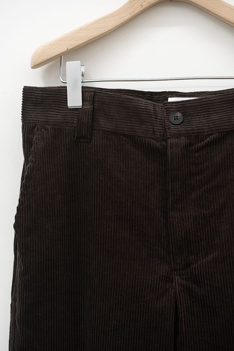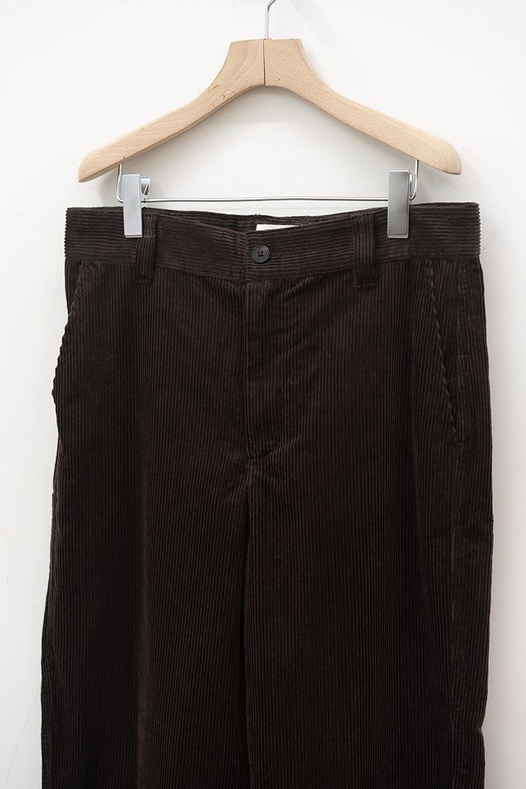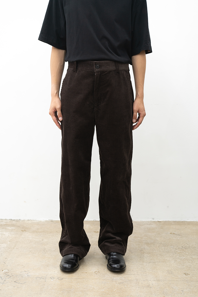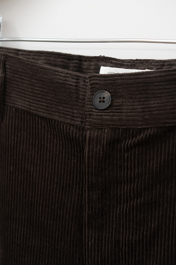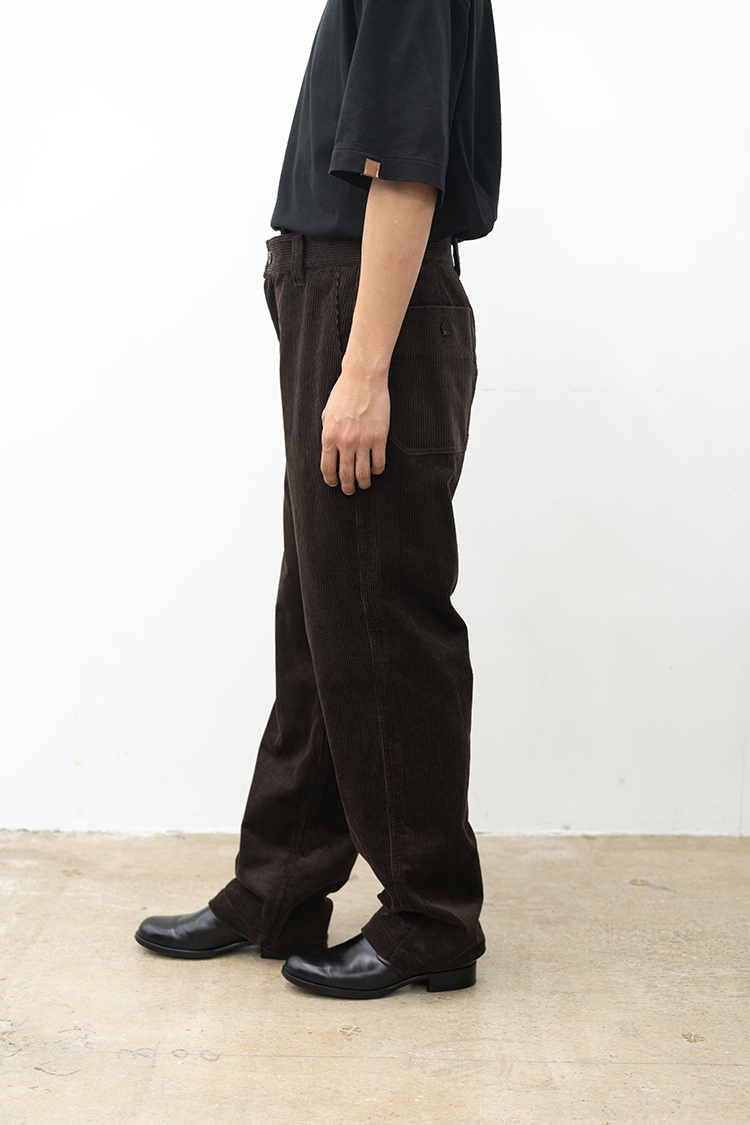 ストレートシルエットのコーデュロイパンツ。 ミリタリーパンツをベースとしたサイドポケットに バックポケットは敢えてパッチにしたアクセントが 素材の質感も相まって良いバランスに仕上がっております。 ブランドの詳細はこちらを 素材 ORGANIC COTTON 100% ※着用詳細 173cm / Java / size 30 サイズスペック 【28】ウエスト‐80.0cm 股上‐24.5cm 股下-77.0cm 裾幅-23.0cm 【30】ウエスト‐81.0cm 股上‐25.0cm 股下-78.0cm 裾幅-23.0cm 【32】ウエスト‐88.0cm 股上‐27.0cm 股下-78.5cm 裾幅-24.0cm