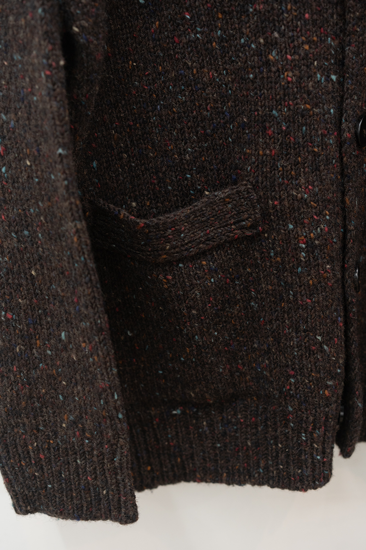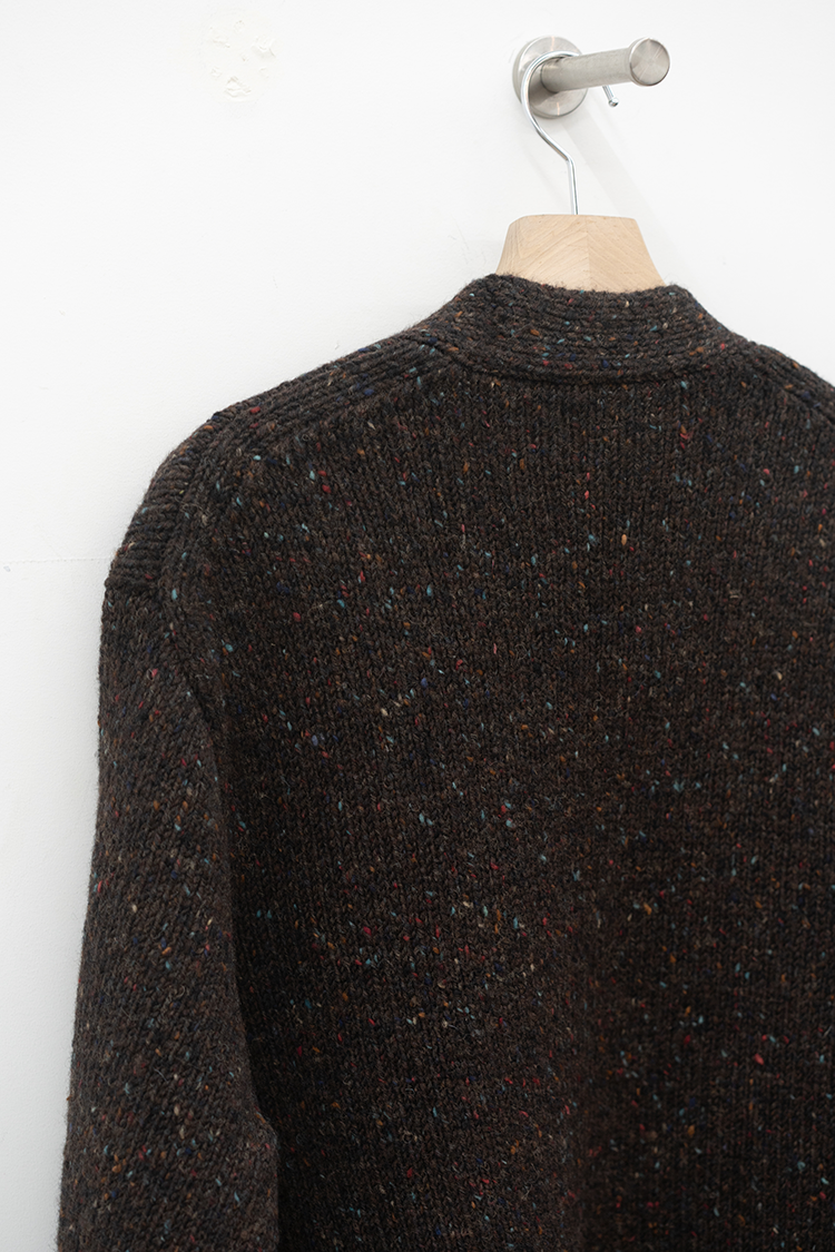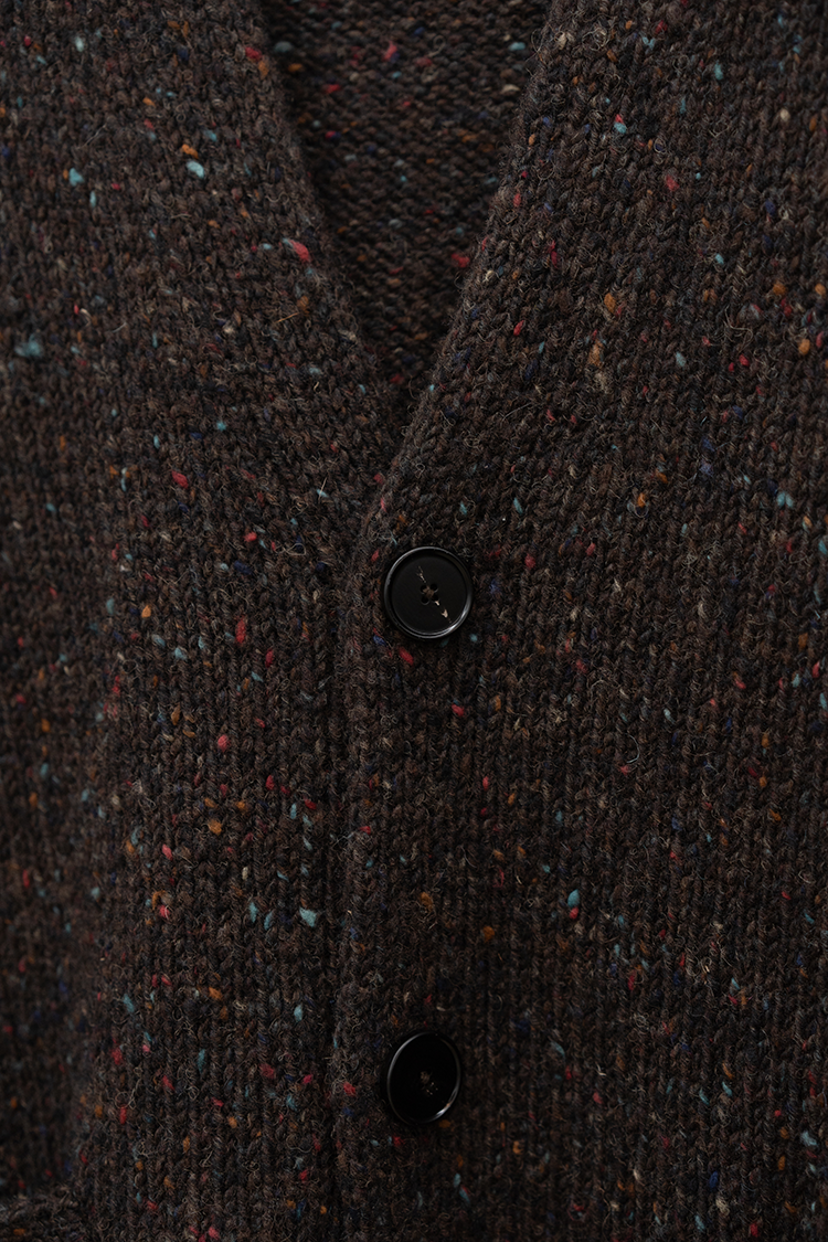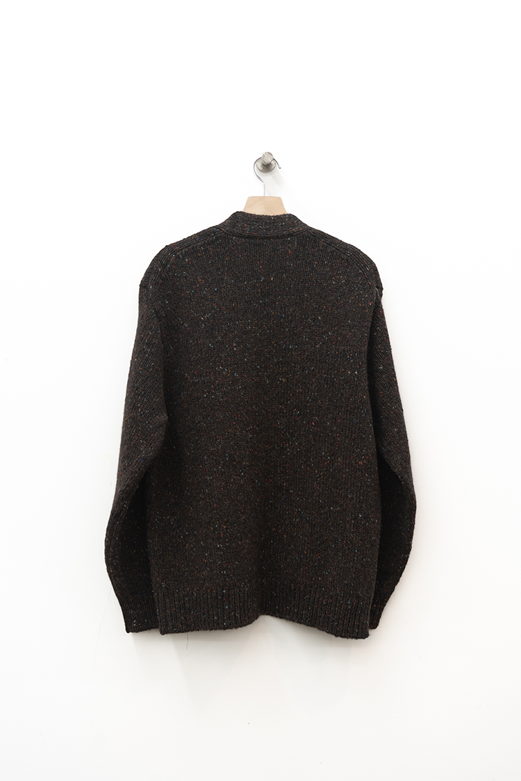 クラシカルなムードのリラックスカーディガン。 アイルランドを代表するドニゴールで紡がれた風合い豊かなニットは、 斑点模様のあるウールで暖かくチクチクもせずざっくりとしたローゲージが魅力。 網目を粗く仕上げることによって通気性と伸縮性に優れ、柔軟性があって着心地が良い。 ゆったりとしたVネックに、サイドのパッチポケットがアクセントになっています。 ブランドの詳細はこちらを 素材 VIRGIN WOOL 100% ※着用詳細 cm / size サイズスペック 【M】着丈‐71.0cm 身幅‐60.0cm 肩幅-50.0cm 袖丈-62.0cm 【L】着丈‐73.0cm 身幅‐63.0cm 肩幅-51.0cm 袖丈-63.0cm