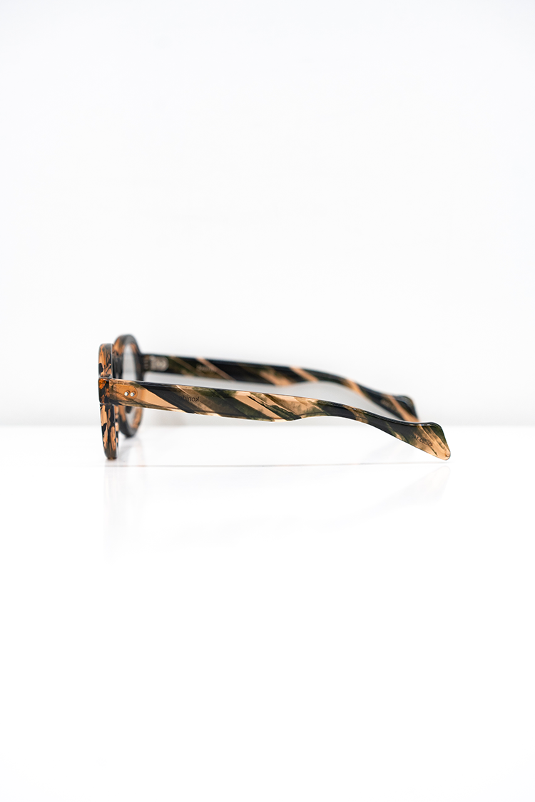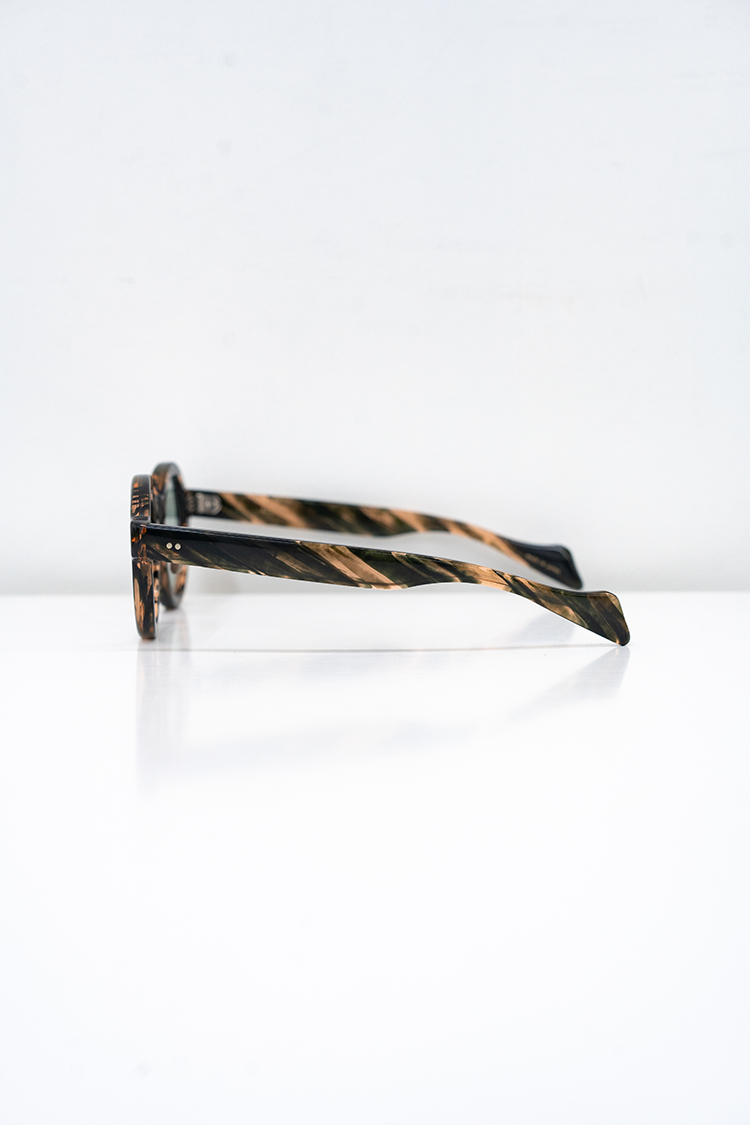 「konide」は、円錐形の成層火山(コニーデ火山) に着想を得ており富士山と赤城山をモデルにしています。 現在の富士山と、かつての赤城山の2つのサイズを10万分の1スケールでレンズサイズに落とし込み、 地球が赤道を軸にわずかに膨らむという特性をアウトラインに起用することで自然が作り出す曲線美を表現しています。 モニターの発色、撮影環境により実際のものと色味が異なる場合がございます。 素材 セルロイド 99%UVカットレンズ レンズ透過率 clear 95% green 71% サイズ レンズ幅 45mm ブリッジ幅 23mm テンプル幅 145mm レンズ天地幅 42mm